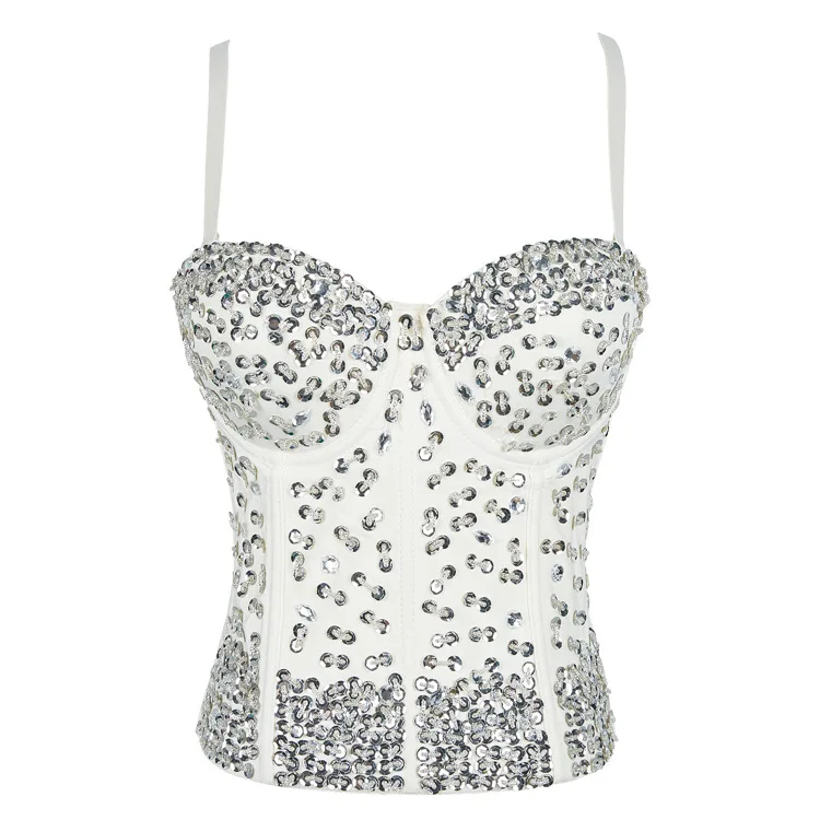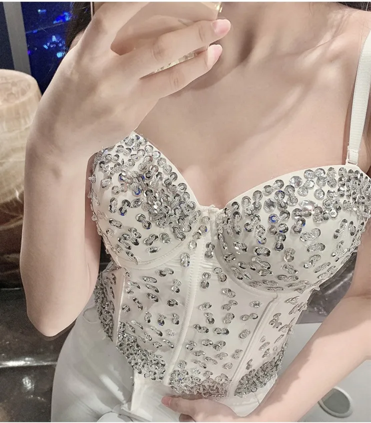 Модный сексуальный корсет Стразы Топ бюстье короткий топ наряд праздничная одежда женские топы с блестками для женщин Лето 2021