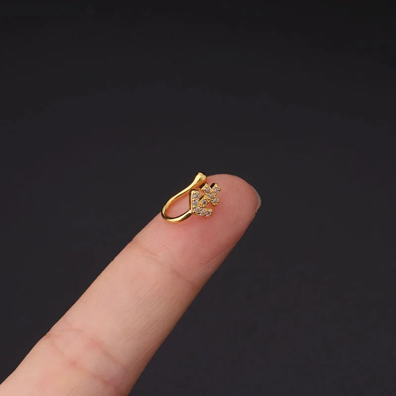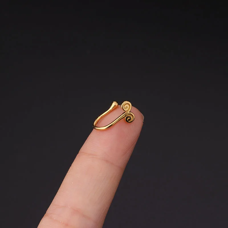 Кольцо для имитации пирсинга носа женское, шпильки серебряного, розового, золотого цвета, в форме сердца, глаз, кролика, зажим для носа, 1 штука