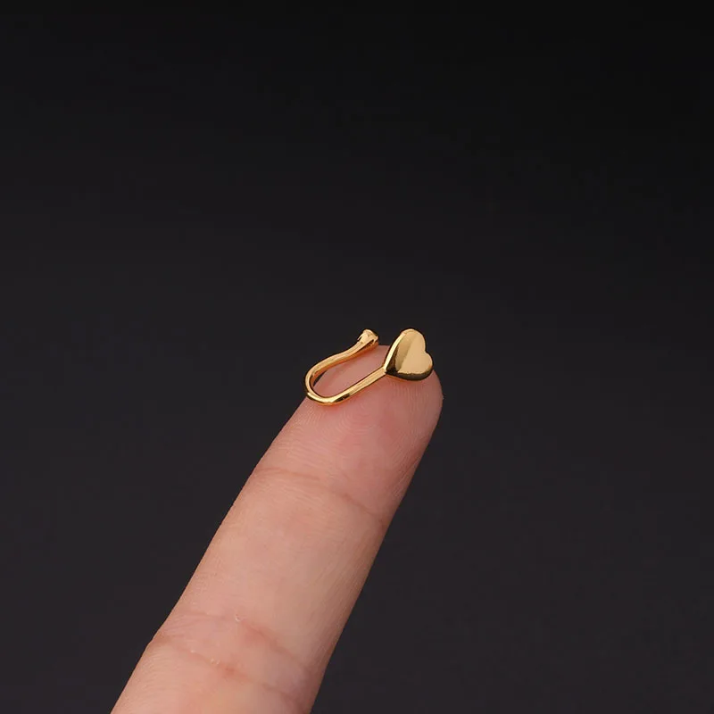 1 шт. Поддельные Пирсинг Нос Кольца шпильки для женщин серебро розовое золото сердце глаз кролик клип Нос Кольца шпильки
