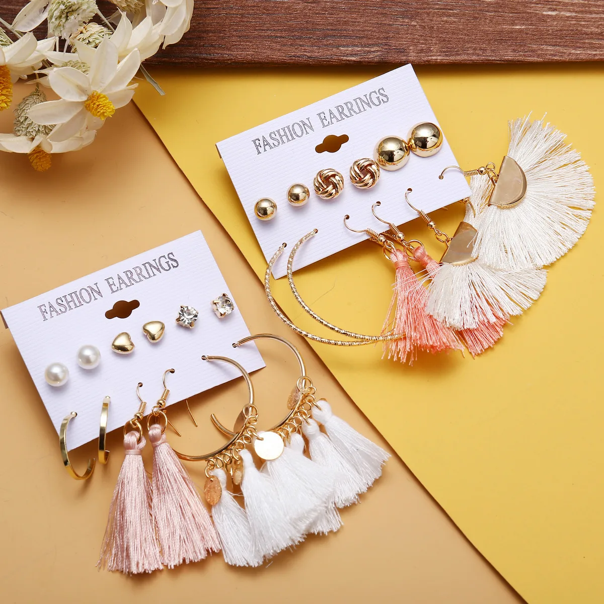 Новейшие винтажные большие золотые серьги-кольца в разных стилях для женщин Набор больших круглых сережек с кисточками эффектные ювелирные изделия