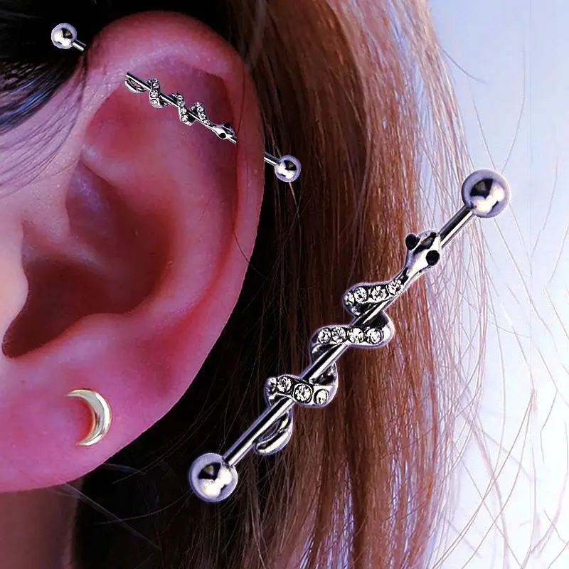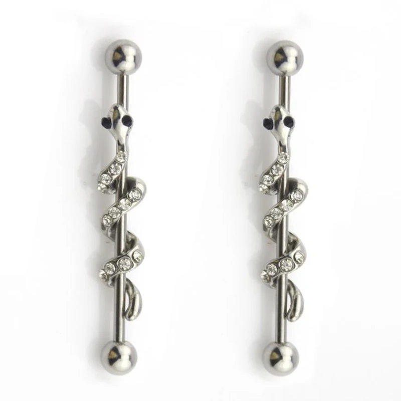 Хирургическая сталь Goth Snake, Промышленная Штанга для пирсинга, серьги-гвоздики для женщин и мужчин, Кольцо Козелок Уха, ювелирные изделия для тела