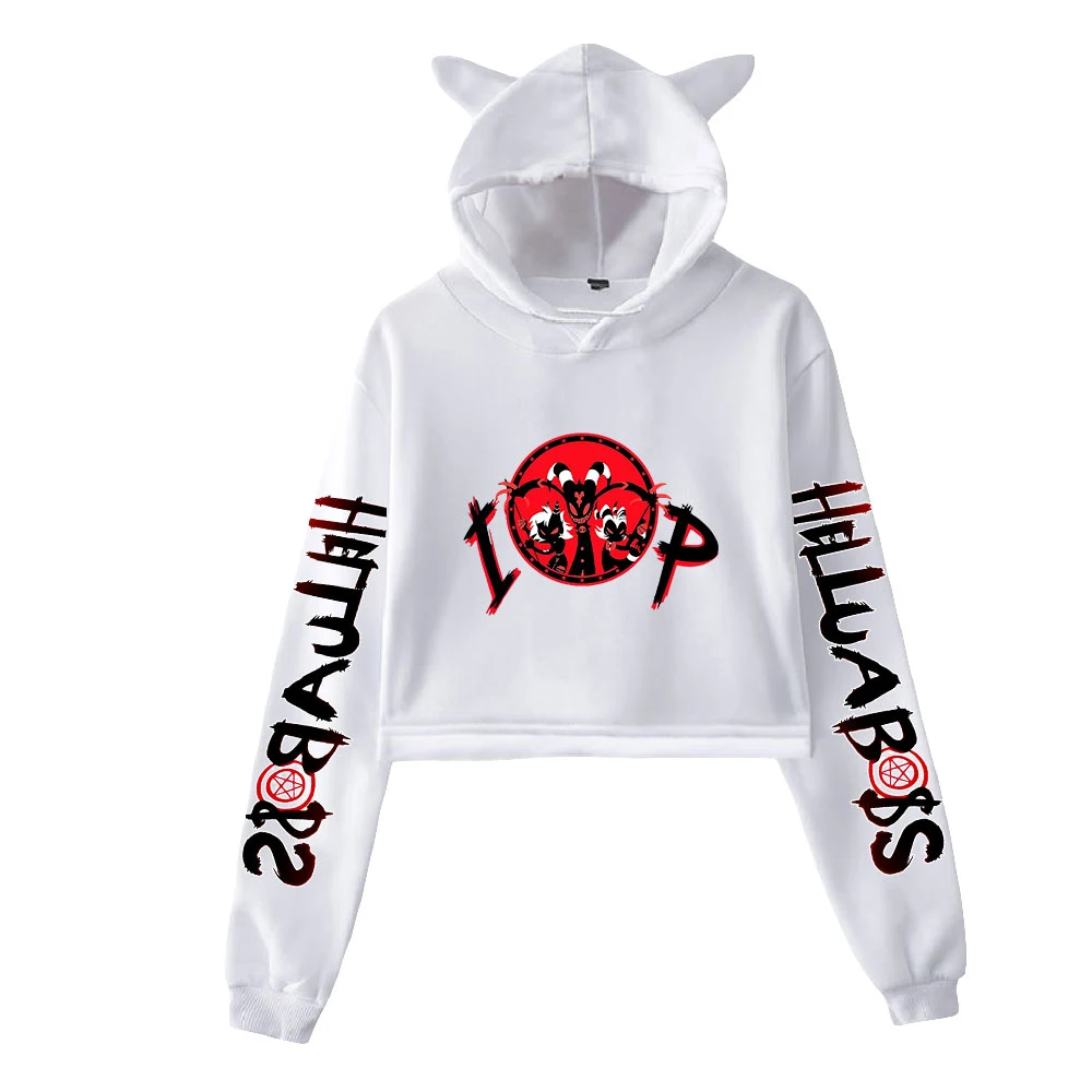 Толстовки Helluva Boss, толстовки с кошачьими ушками, укороченные т...