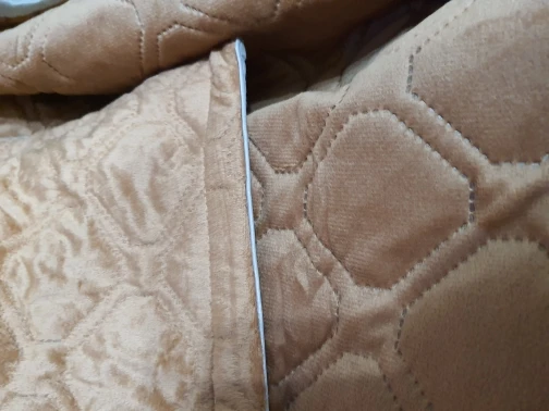 Здравствуйте. Получили свое покрывало.Очень приятное на ощупь,прошито хорошо(нитки не торчат).Нам идеально подошёл по цвету и размеру. Рекомендую