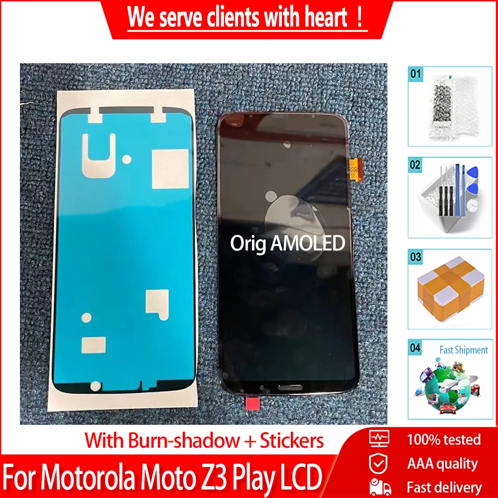 Оригинальный AMOLED-дисплей для Motorola Moto Z3 Play xt138, ЖК-дисплей, сенсорный экран, дигитайзер в сборе с функцией Burn-shadow + Сменные наклейки