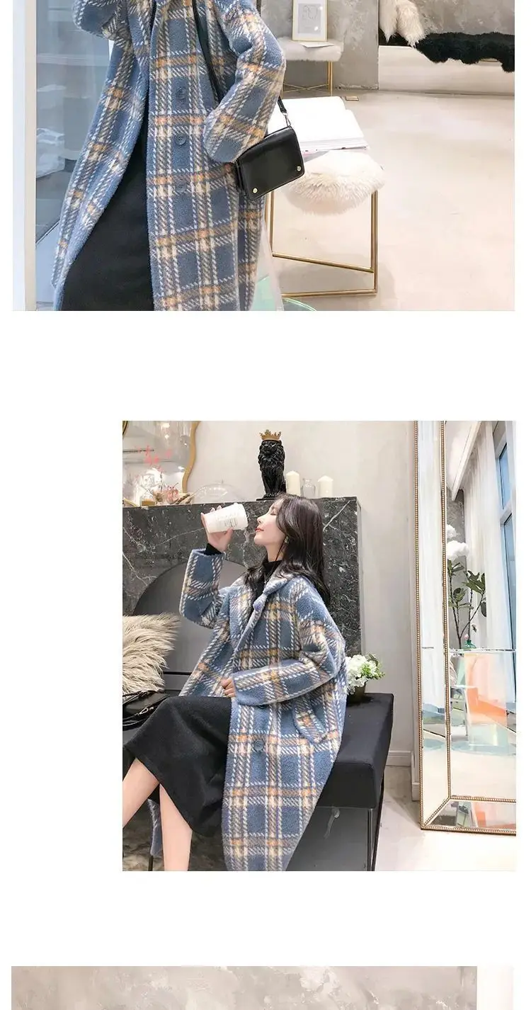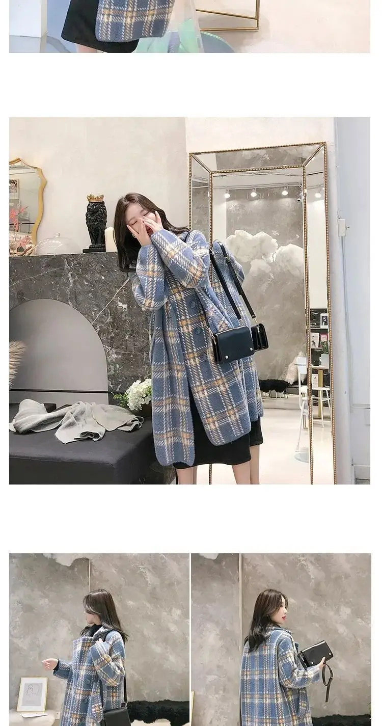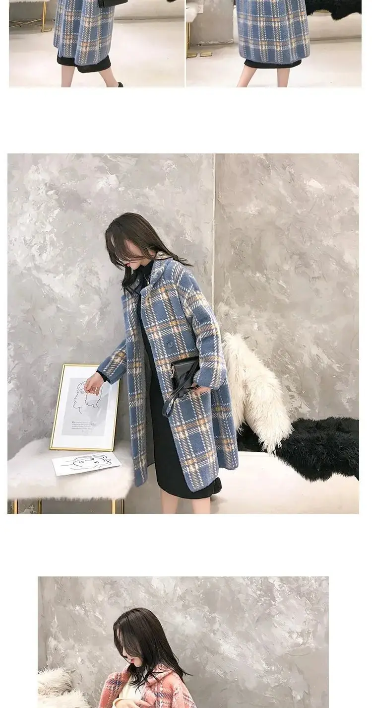 Женское шерстяное пальто в клетку, свободного покроя, в Корейском с...