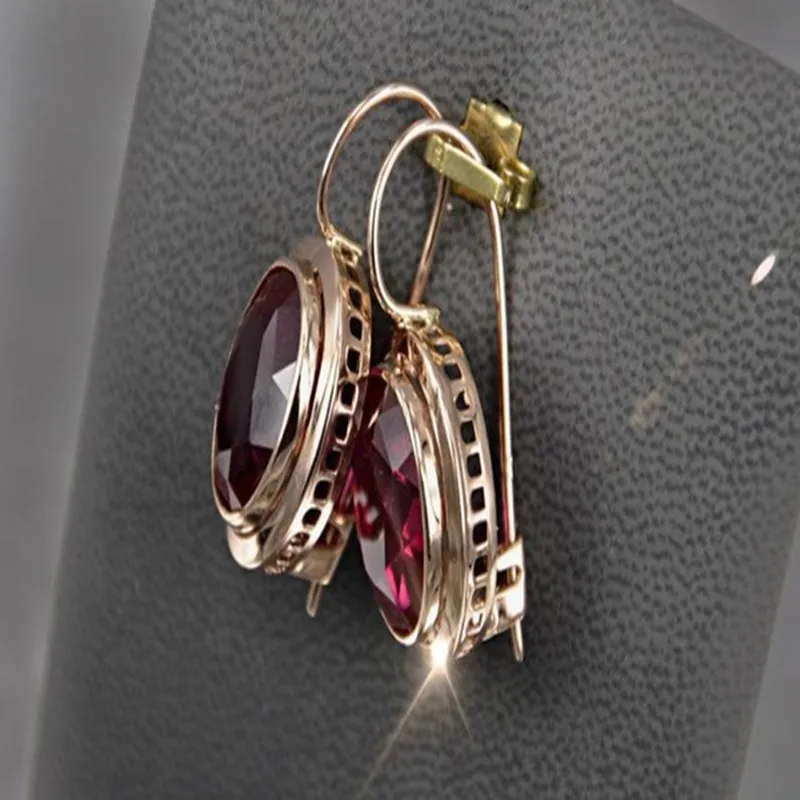 Ослепительные Элегантные женские модные позолоченные серьги, красные овальные серьги с драгоценным камнем, свадебные украшения, подарки для девочек