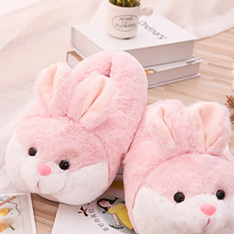 Симпатичные плюшевые тапочки в виде кролика на каблуке, зимние теплые тапочки в виде животных, пушистые домашние тапочки розового цвета, подходят для женщин и девочек