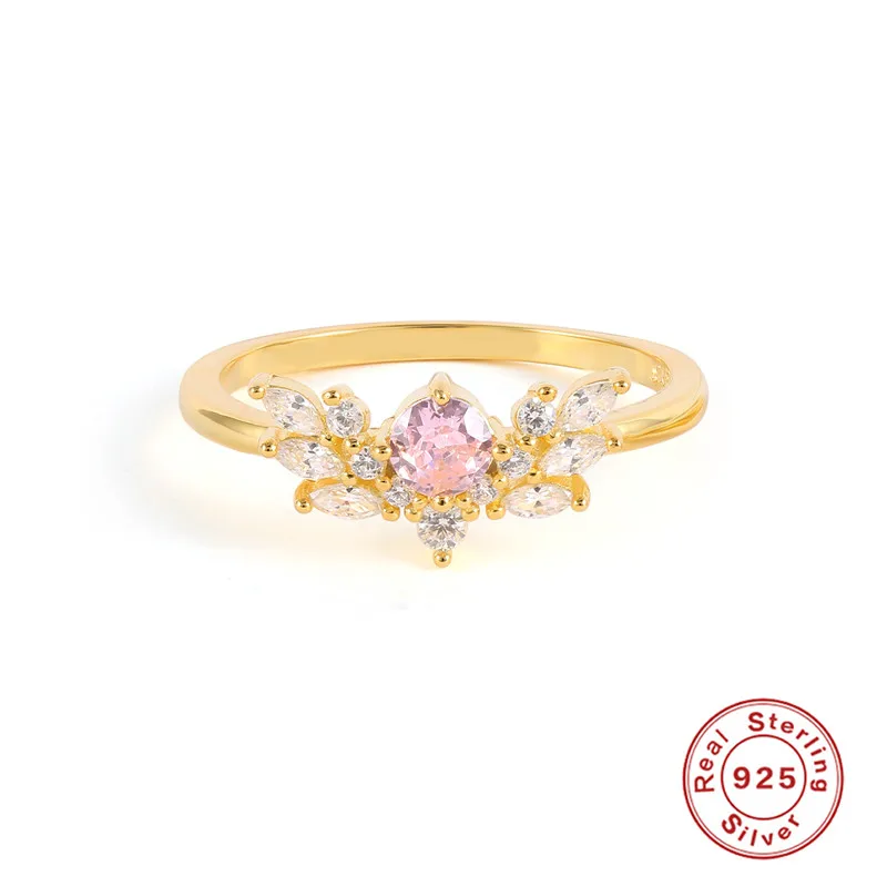 Женское кольцо с цветком из стерлингового серебра 925 пробы, изящное кольцо с розовым цирконием, вечерние ювелирные украшения, подарок