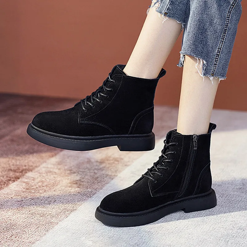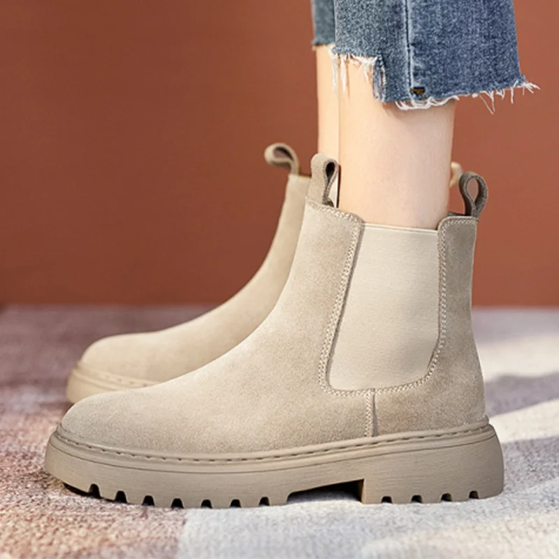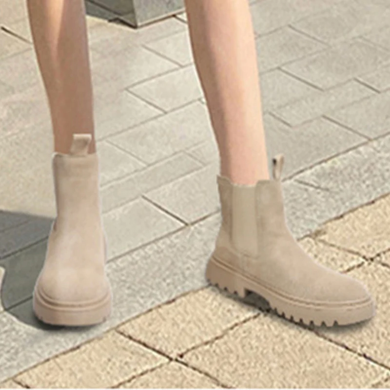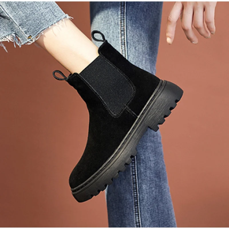 Женские ботинки в британском стиле, матовые полусапожки из натуральной кожи, однотонная Уличная обувь на плоской платформе с круглым носком