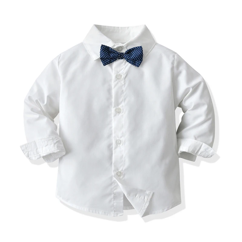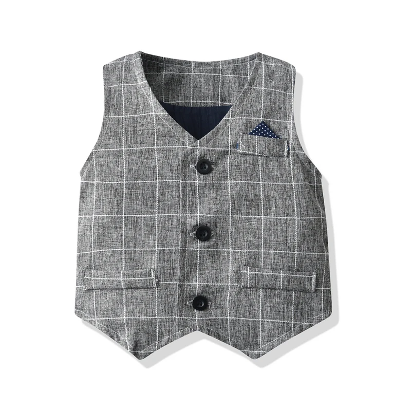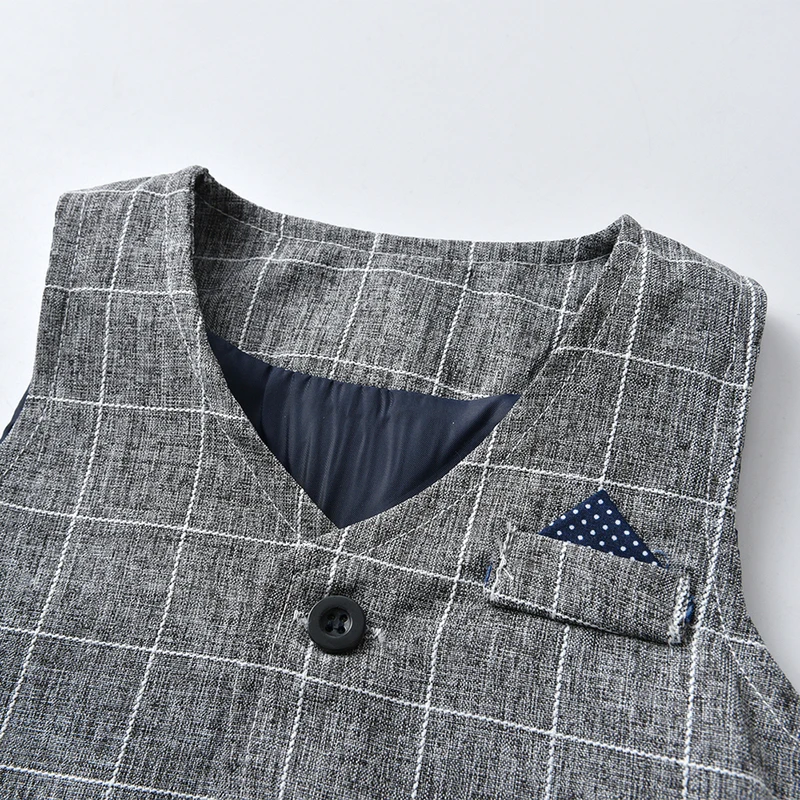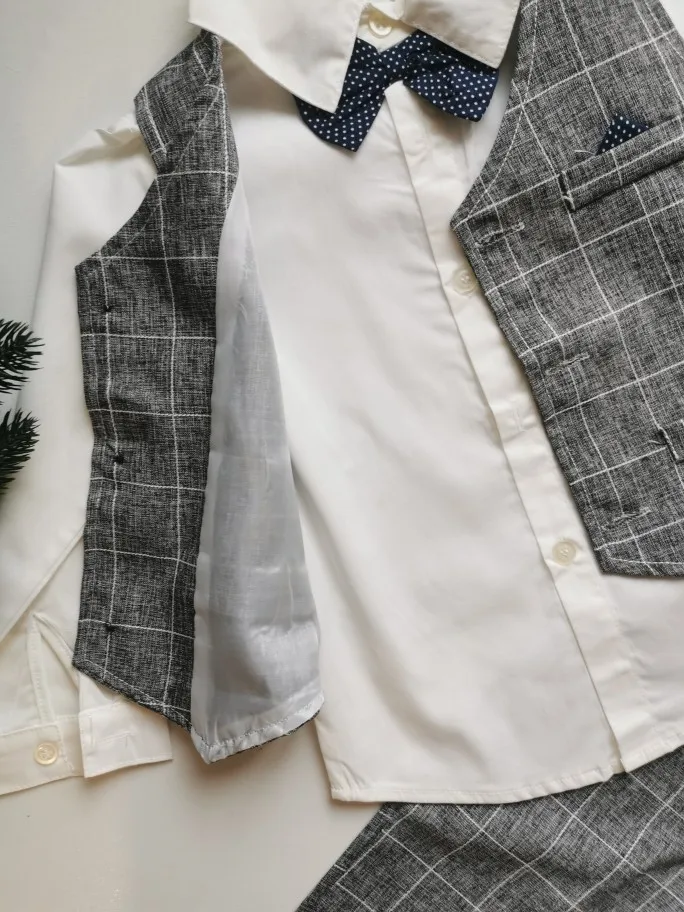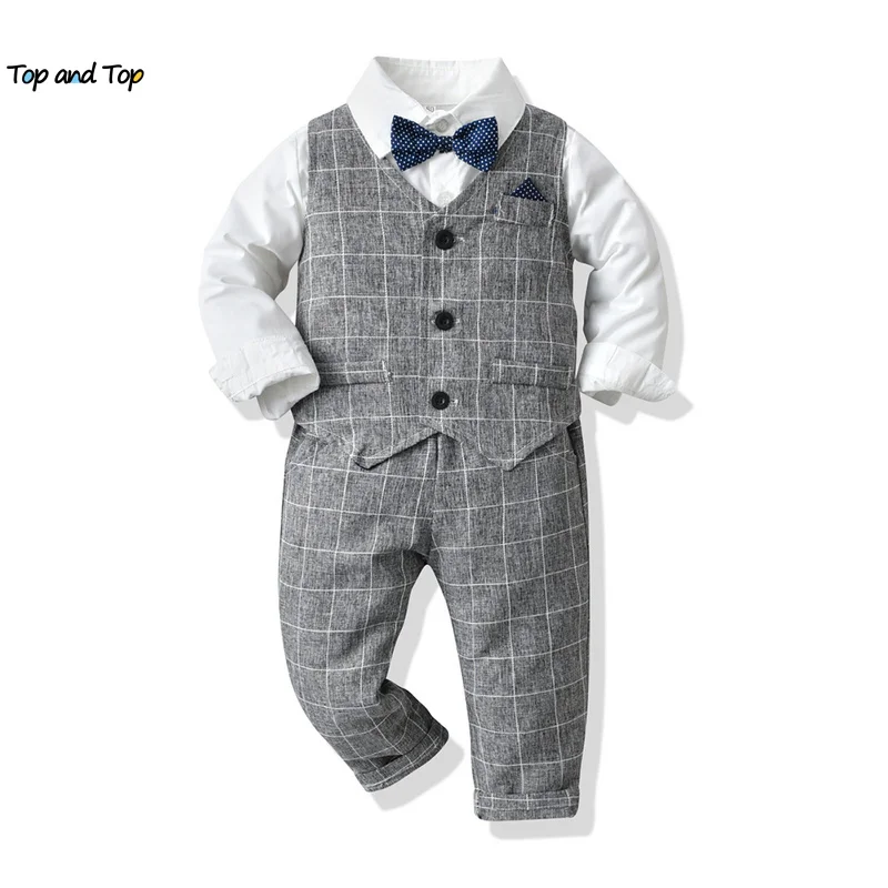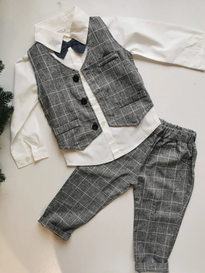 3 шт., комплект одежды для мальчиков, белая рубашка с длинным рукавом и галстуком-бабочкой, клетчатый жилет и брюки