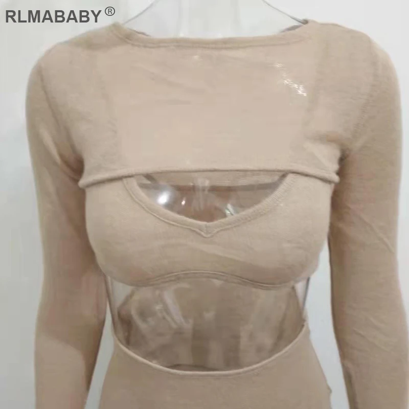 Женский трикотажный комплект из 2 предметов, облегающее платье макси без косточек с длинным рукавом и укороченный топ на бретелях-спагетти