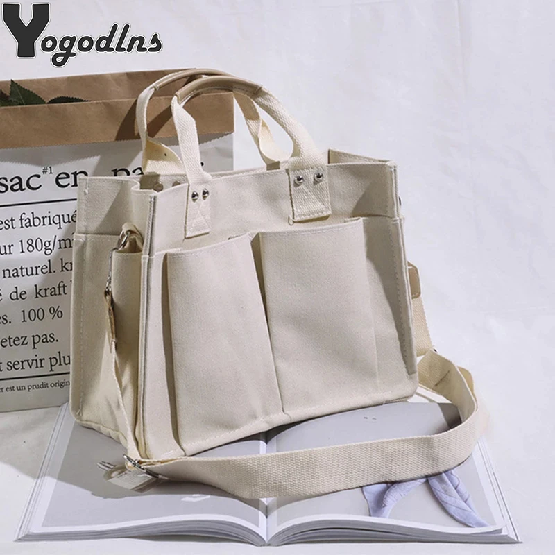 Повседневные вместительные сумки через плечо для женщин, холщовые с...