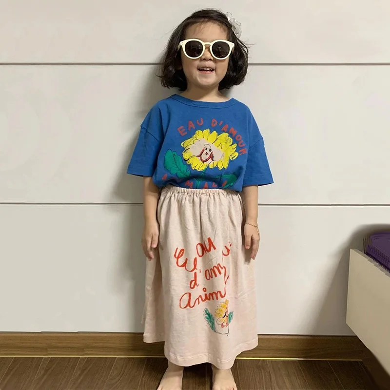 Комплект одежды для девочек, детская футболка с коротким рукавом + юбка, костюм из 2 предметов, Детский костюм, одежда с принтом для детей, летняя одежда 2021