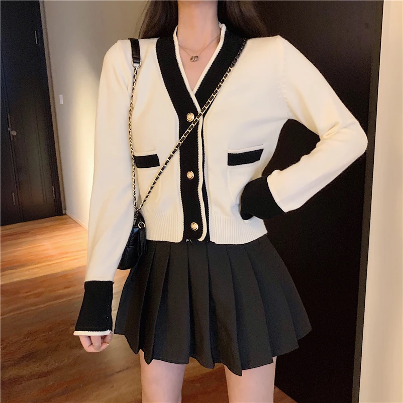 Женский трикотажный кардиган с V-образным вырезом, длинным рукавом