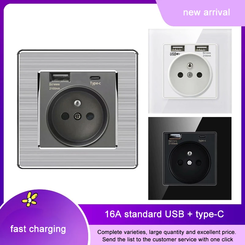 KAMANNI французский стандартный разъем с USB зарядной панелью Смарт Type-C интерфейс Быстрая зарядка источник питания розетка