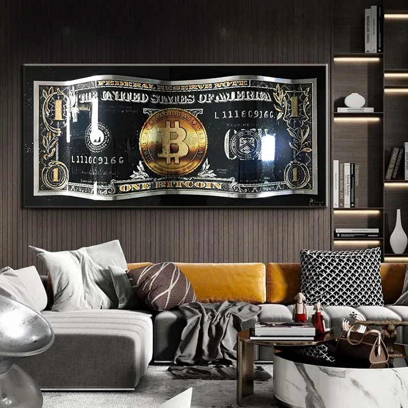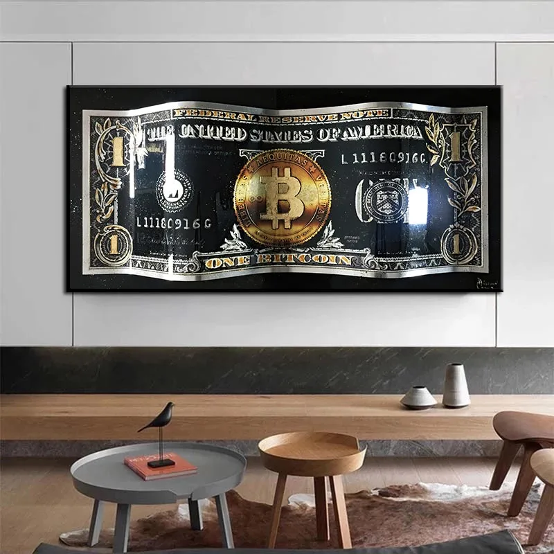 Вдохновляющие деньги Холст Картина один Биткойн доллар плакаты и принты винтажная Ретро Настенная картина для декора гостиной