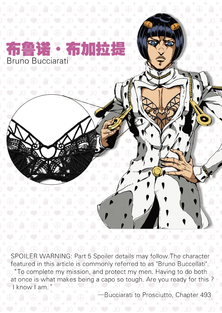Костюм для косплея аниме JOJO 5, невероятные приключения Джоджо, золотой ветер, Бруно буккарити, нижнее белье, кружевные комбинезоны, бюстгальтер, кружевные подарки