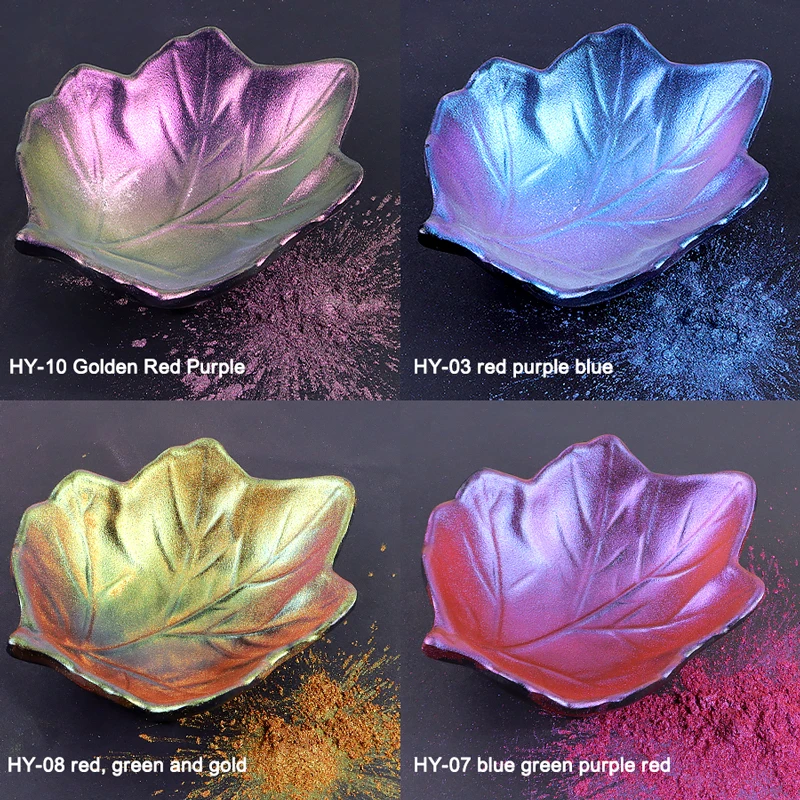 10-цветный порошок Smurf жемчуг-хамелеон, обладает хорошей устойчивостью к растворителям, высокой термостойкостью, очевидным эффектом изменения цвета и т. д.