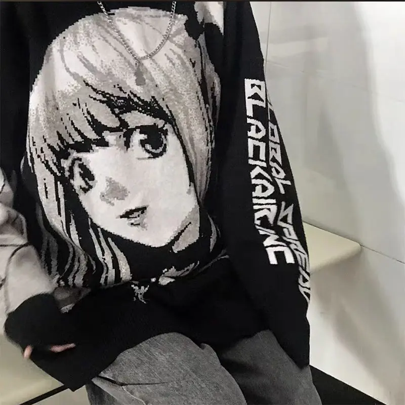 Свитер женский Трикотажный Хлопковый оверсайз, в стиле японского аниме