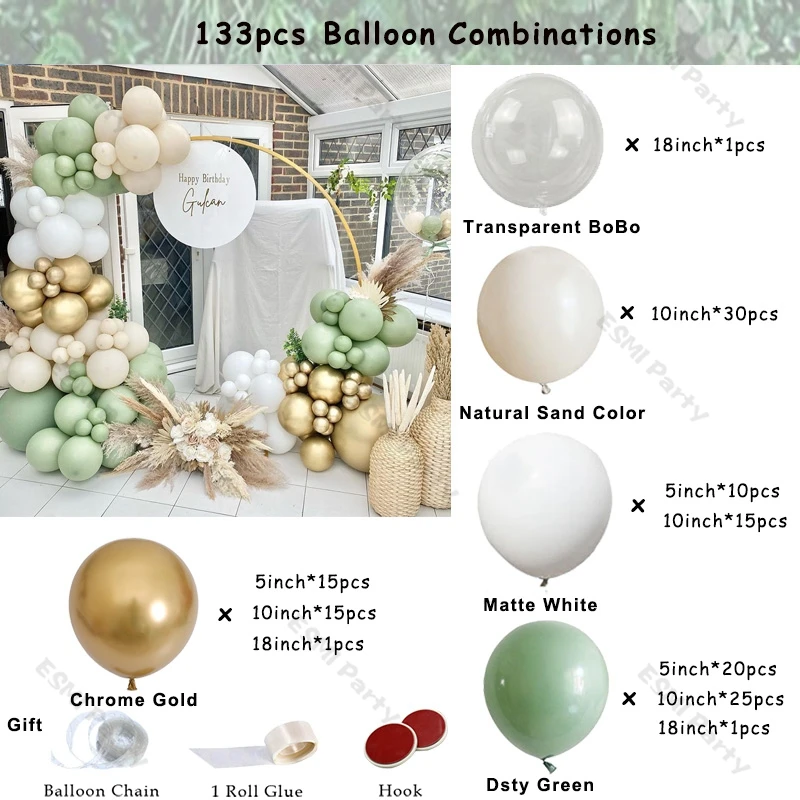 133 шт пыльные Зеленые Белые воздушные шары-гирлянды, цепочка DIY, украшение на свадьбу, день рождения, прозрачный баллон, арочный комплект, декор для детского душа