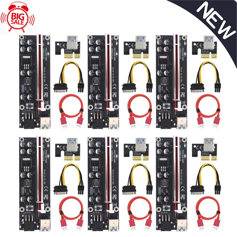 Карта расширения Ver009S Plus PCI-E, 1X до 16X, кабель-удлинитель для графической карты, USB 0,6, кабель 3,0 м, 6-контактный разъем питания для майнинга графическим процессором