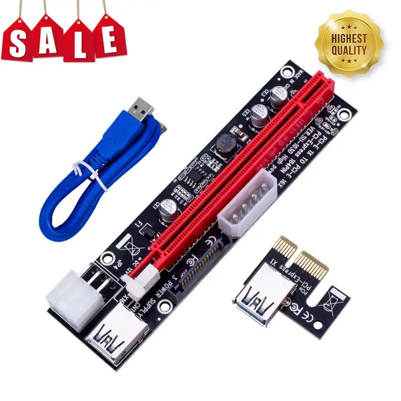 Посылка включает в себя:1x USB кабель. 1x 1X к 16x Удлинительный кабель. 1x PCIE riser board. 1x адаптер PCIE.