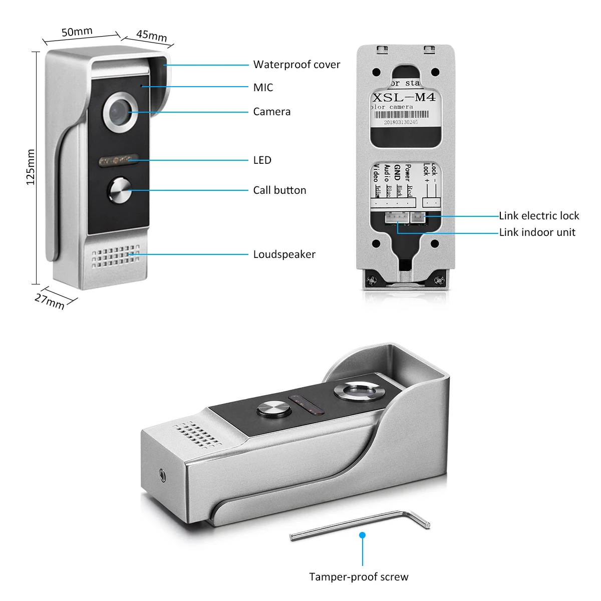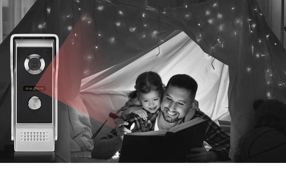 90 градусов широкоугольный дверной звонок камеры, это поможет вам смотреть более широкий и больше площади. 1000TVL HD камера гарантирует, что вы можете видеть и говорить со всеми посетителями. Наружная камера с покрытием из цинкового сплава, водонепроницаемая и Пылезащитная, она будет более прочной.