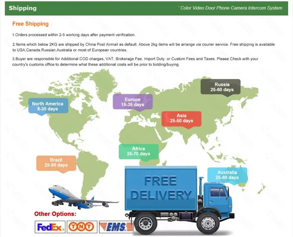 Наружный дверной звонок:1000TVL, ИК ночное видение, водонепроницаемый, угол обзора 90 градусовРазмер: 125*50*45 ммВнутренний монитор:7 дюймов, мониторинг, визуальный домофон, Удаленная разблокировка, поддержка макс. 32 Гб sd-картыРазмер: 230*165*22 мм