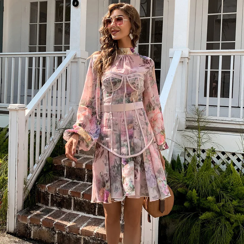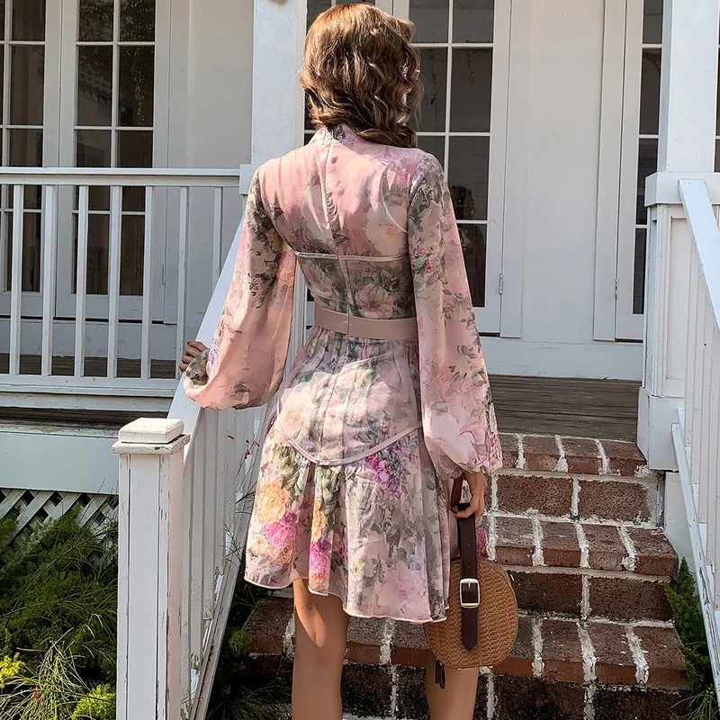 Платье-трапеция летнее, с пышными рукавами и цветочным принтом, 2021