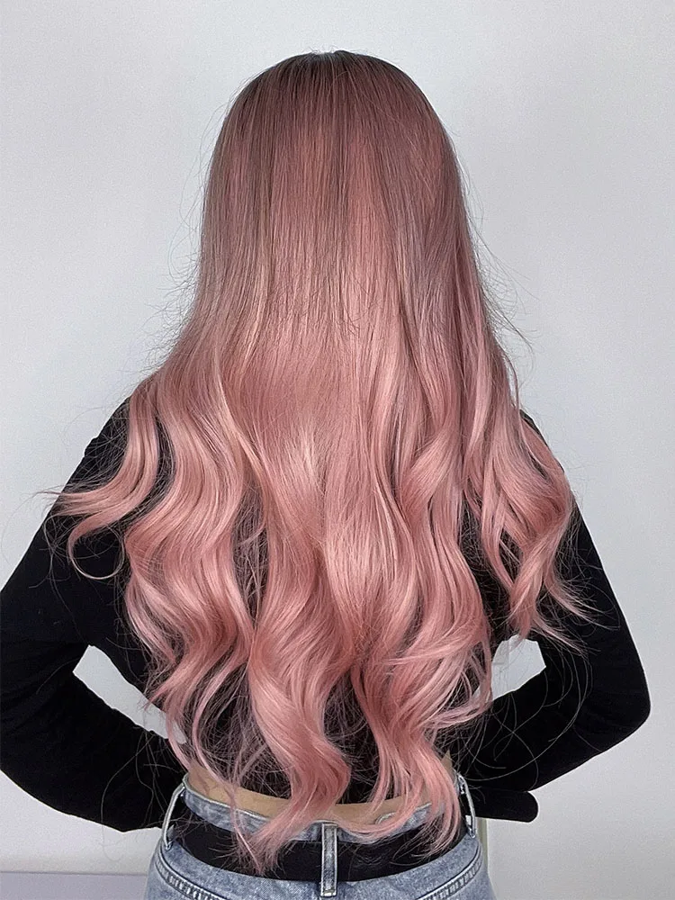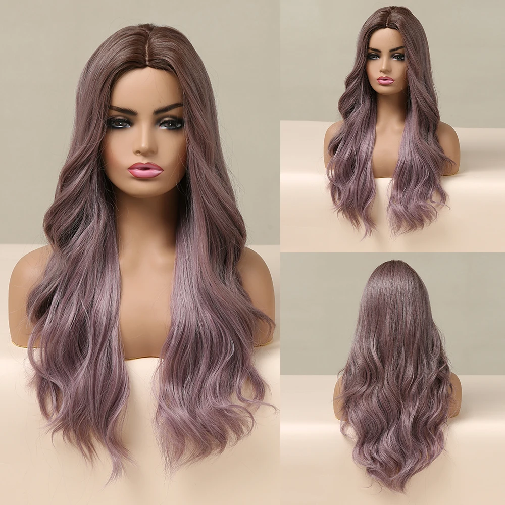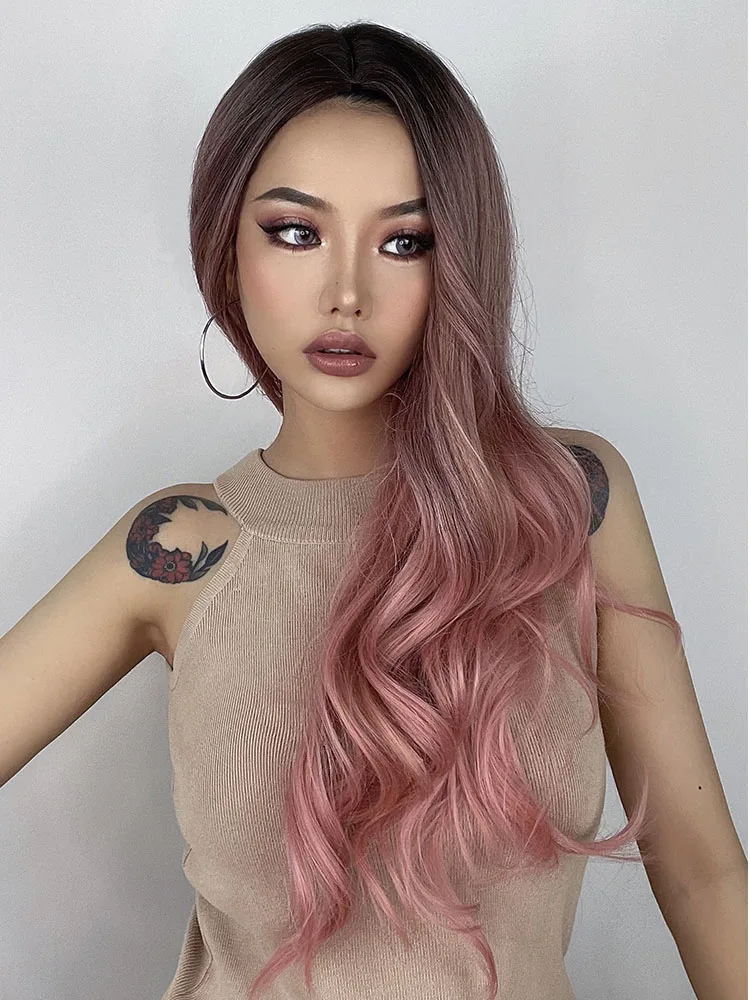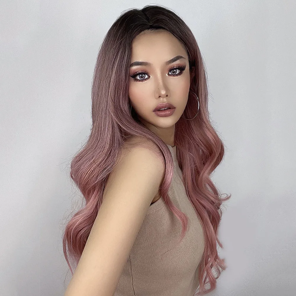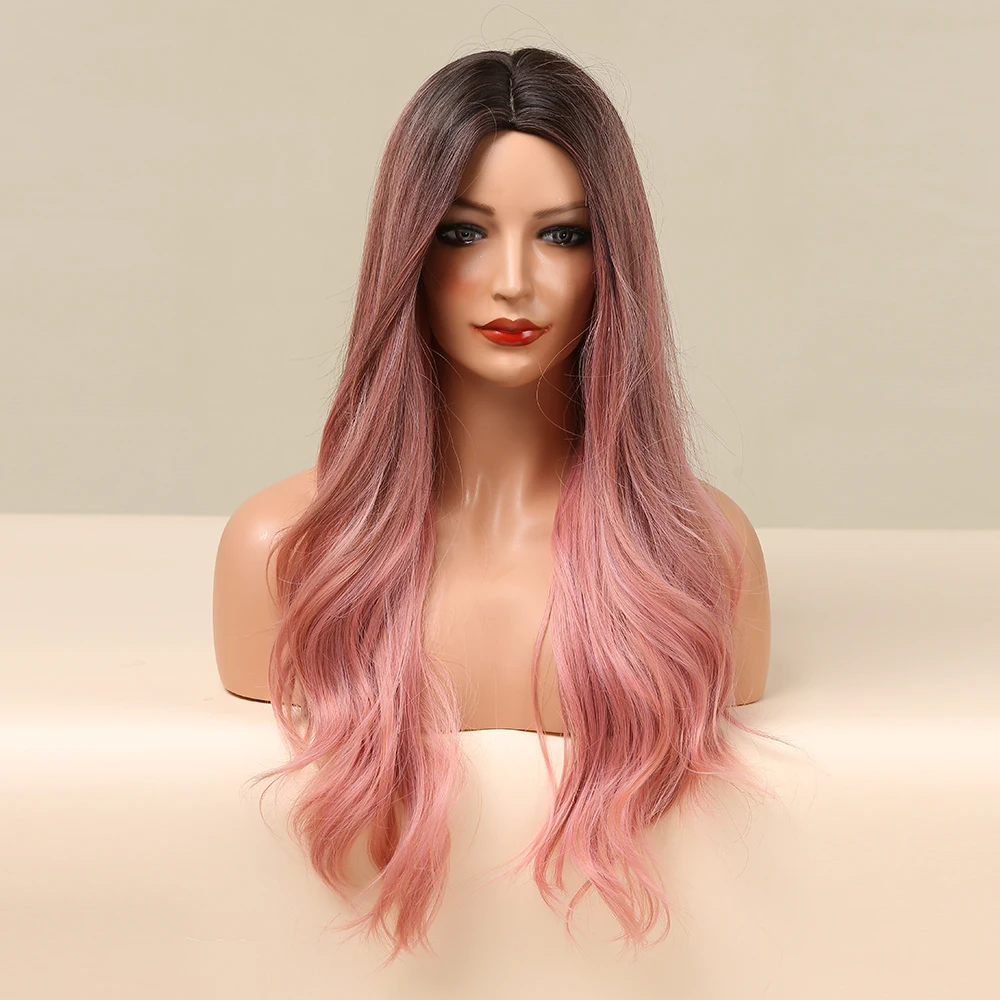 Длинные волнистые синтетические парики henmargu, черные и розовые парики с эффектом омбре для женщин, косплей, натуральные волосы средней длины, парик из термостойкого волокна