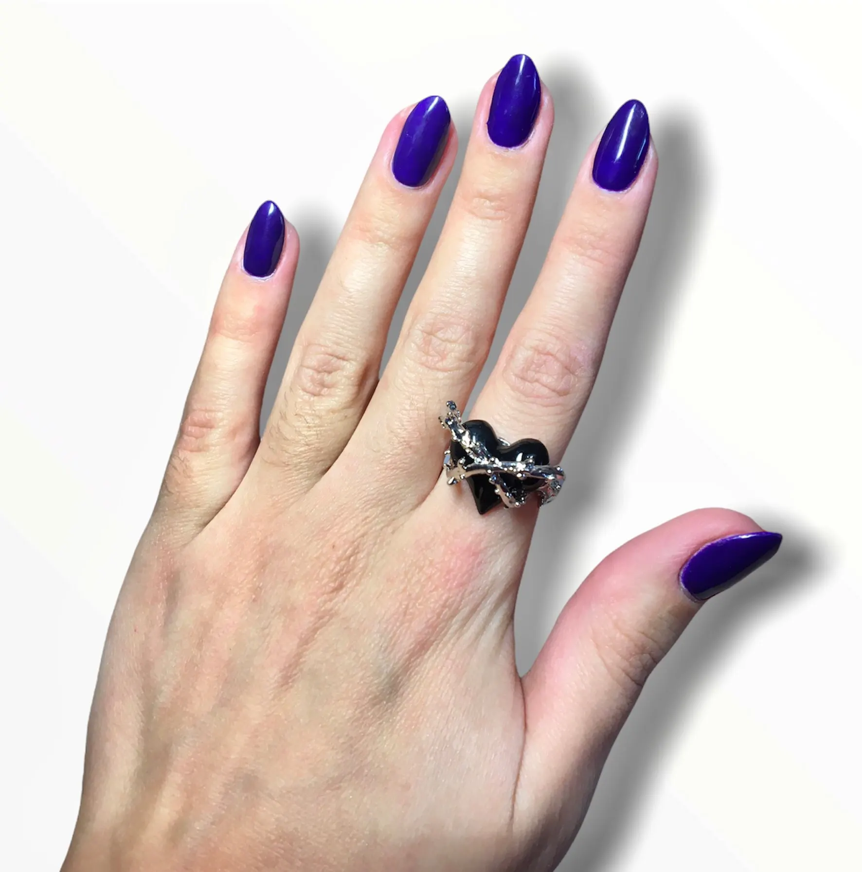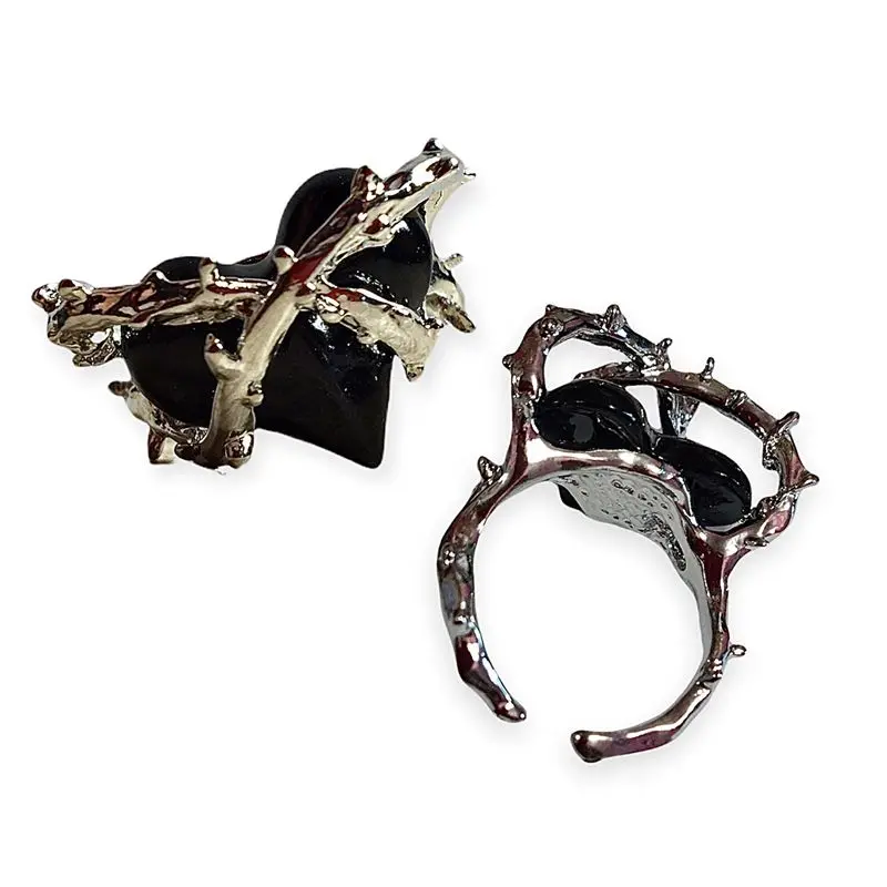 Готические открытые кольца с черными шипами в форме сердца для пары, подходящие кольца, необычное креативное кольцо с любовным розовым сердцем, кольцо в стиле панк для Мужчин, Ювелирные изделия