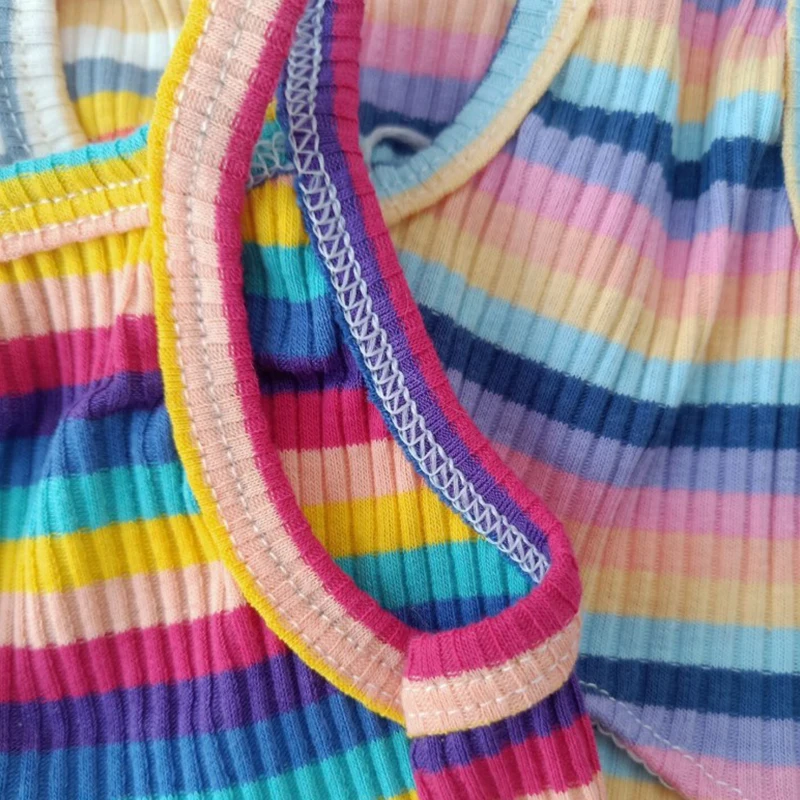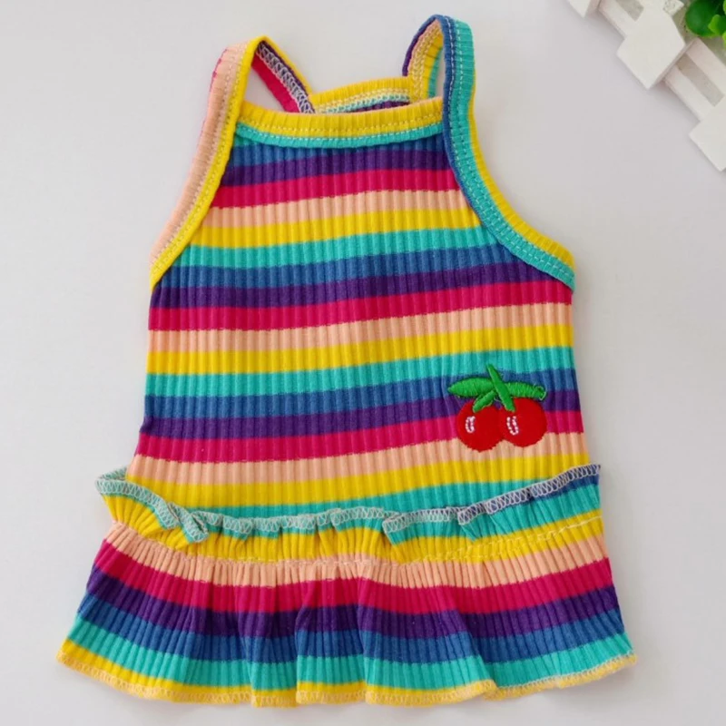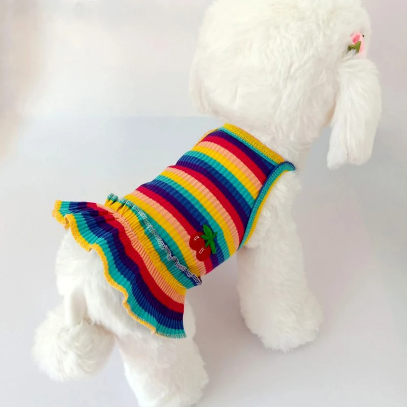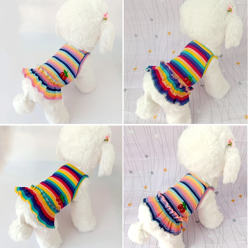 Новинка, полосатая футболка для собак и кошек, жилет радужного цвета, одежда для собакnВесенне-летние платья для кошек и щенков, платья для маленьких собак