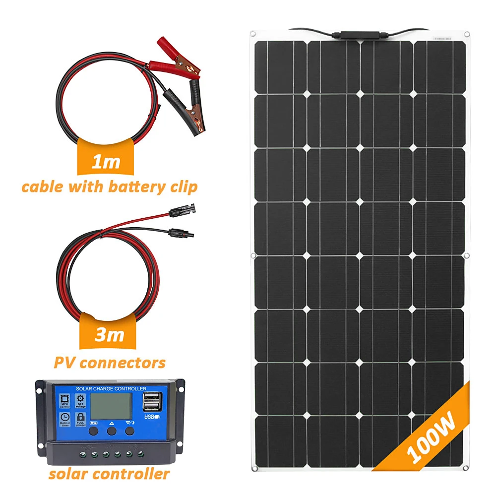 Комплект панелей солнечных батарей 300 Вт, зарядное устройство 12 В, 30 А, ШИМ-контроллер, комплект гибких панелей солнечных батарей для фургона, 100 Вт, 200 Вт
