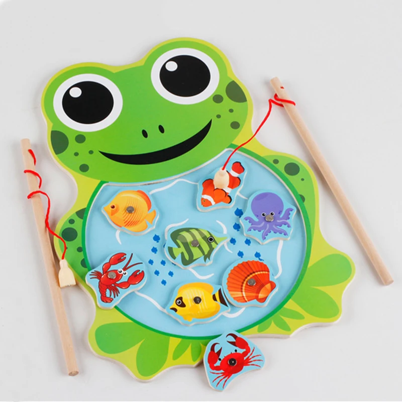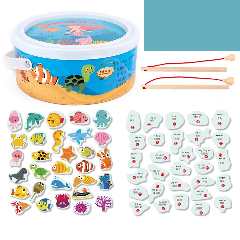 Деревянная Магнитная рыболовная игрушка, познавательная рыболовная удочка, игрушка для малышей, игрушки Монтессори для раннего развития, интерактивная игра для родителей и детей