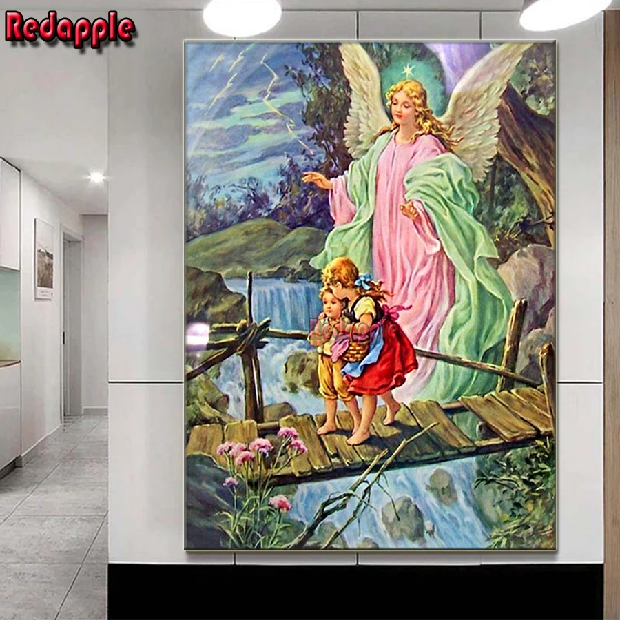 Алмазная вышивка "Ангел-хранитель" для детей, алмазная живопись "сделай сам", Алмазная мозаика 5D, алмазная вышивка, стразы, Декор для дома
