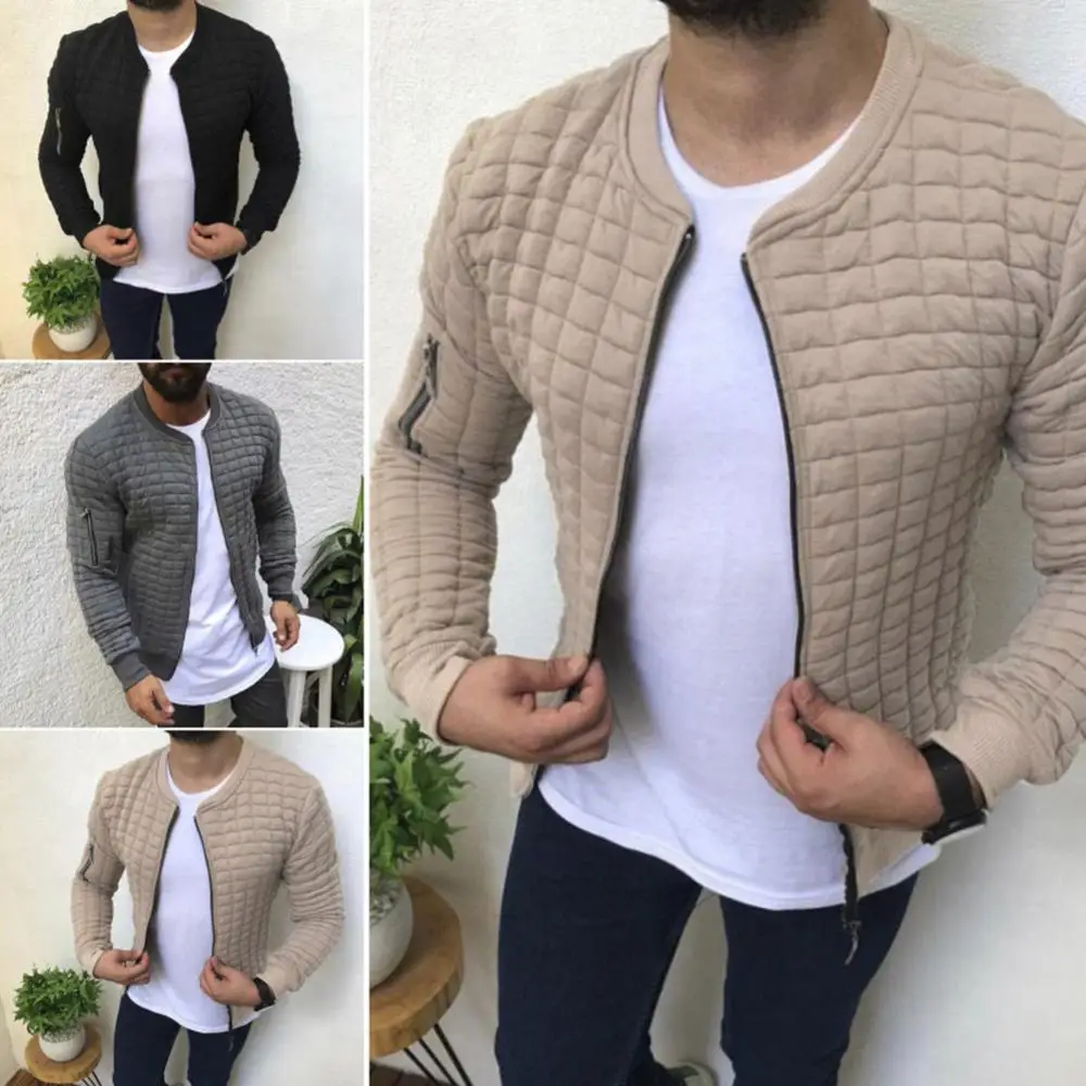 Модная мужская осенняя куртка с круглым вырезом и длинными рукавами, приталенная мужская куртка на молнии, повседневная спортивная мужская куртка