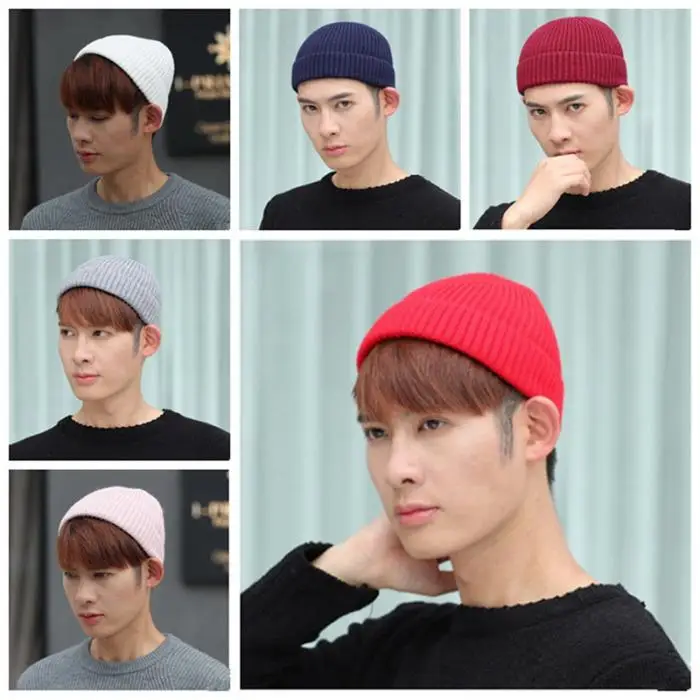 Модная теплая вязаная шапка без козырька, мужские облегающие шапки,...
