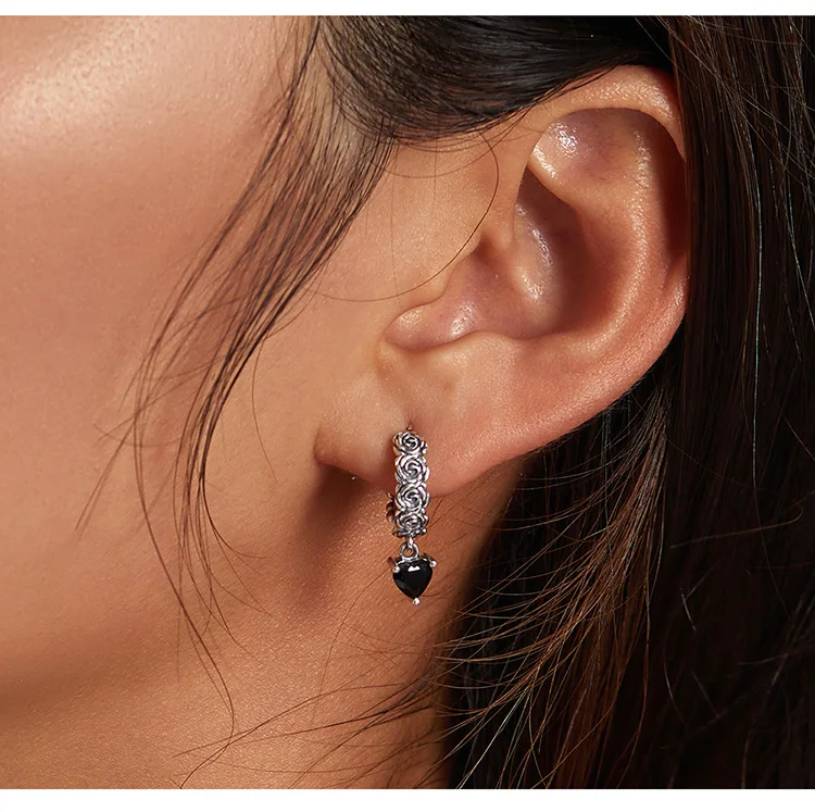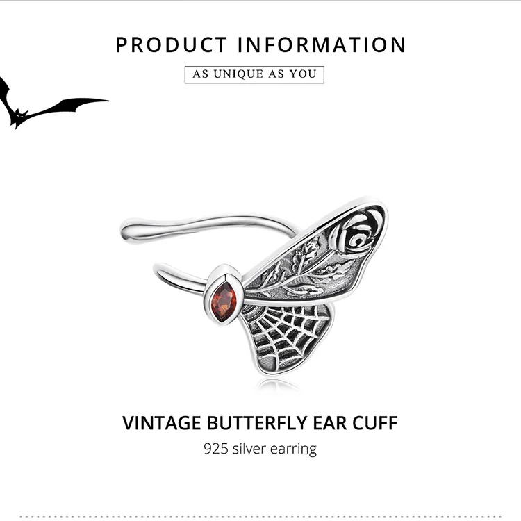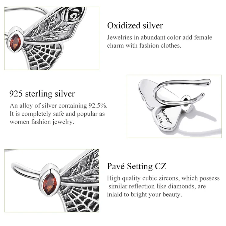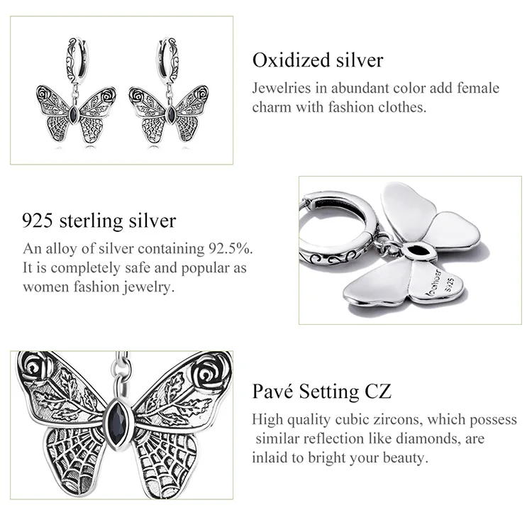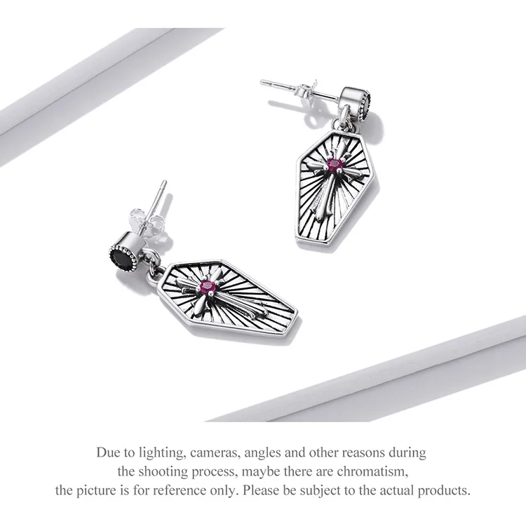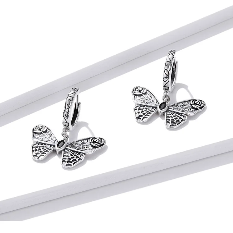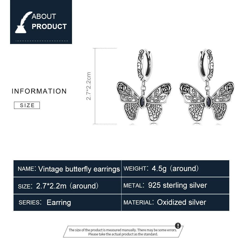 Женские серьги-капли с крестиком bamoer, из стерлингового серебра 925 пробы, с пряжкой в виде темных бабочек, с розовым вампиром