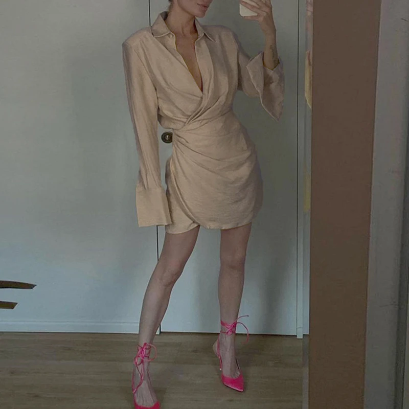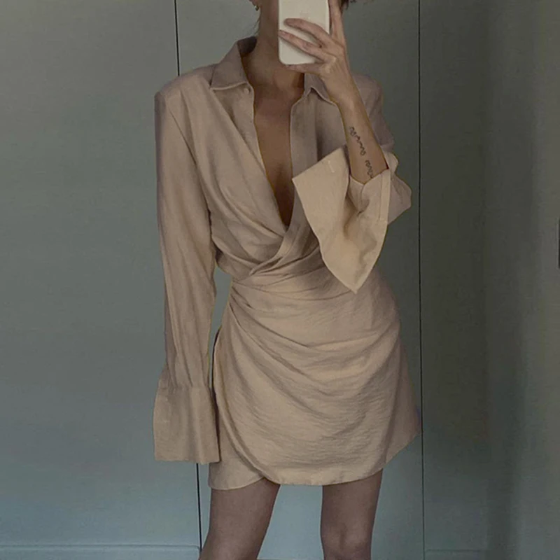 Женские Элегантные пикантные платья, женское осеннее офисное платье с длинным рукавом и низким вырезом, уличная одежда, однотонные облегающие новые трендовые наряды, 2021