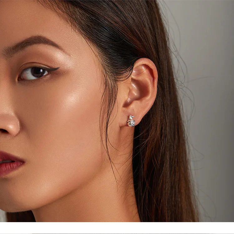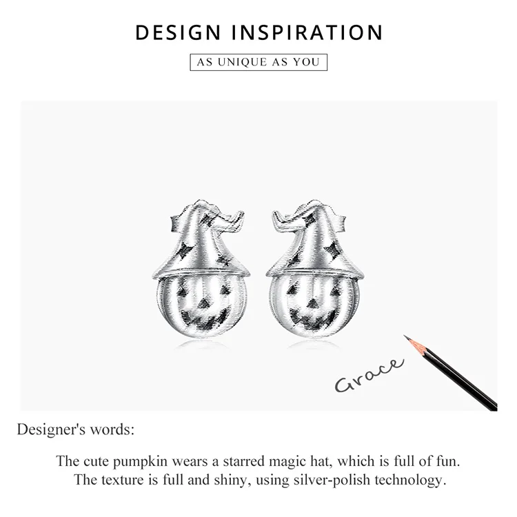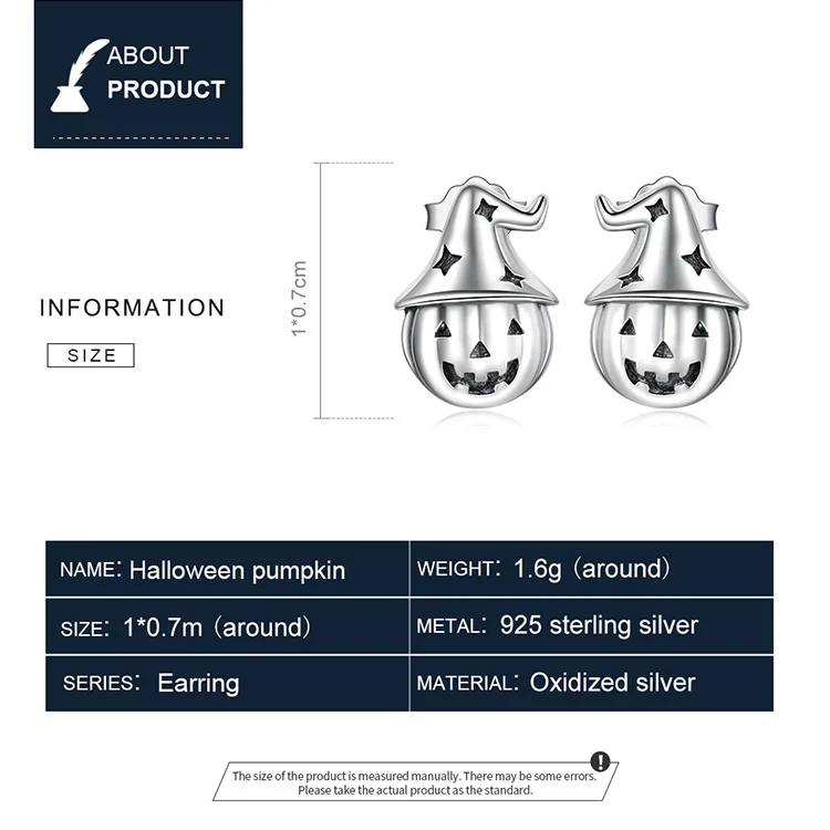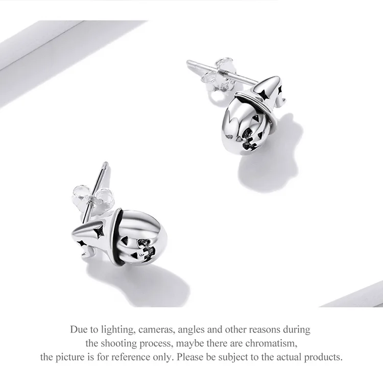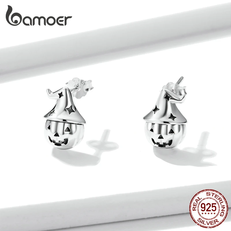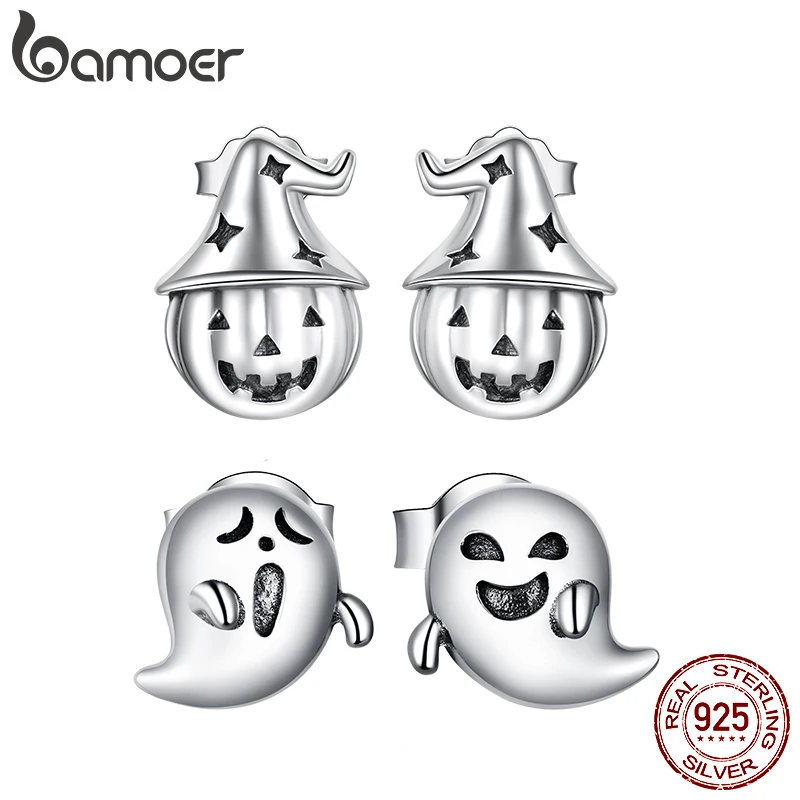 Bamoer Винтаж 925 стерлингового серебра призрак ведьмы на Хэллоуин с принтом тыквы, серьги со шпилькой, для женщин, детей вечерние ювелирные изделия BSE537