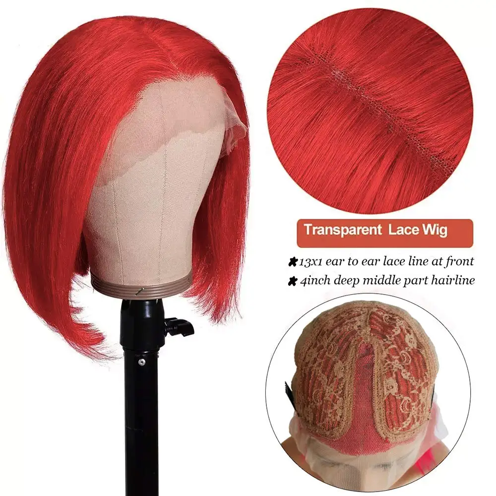 Красный короткий боб парики человеческих волос вырезать парики кружева передний боб парики для черных женщин 13x4x1 средняя часть парик 8-16 дюймов 180 плотность бразильский Реми