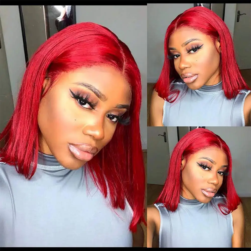 Bob WigsColored Red Short Lace Front Human Hair Wigs