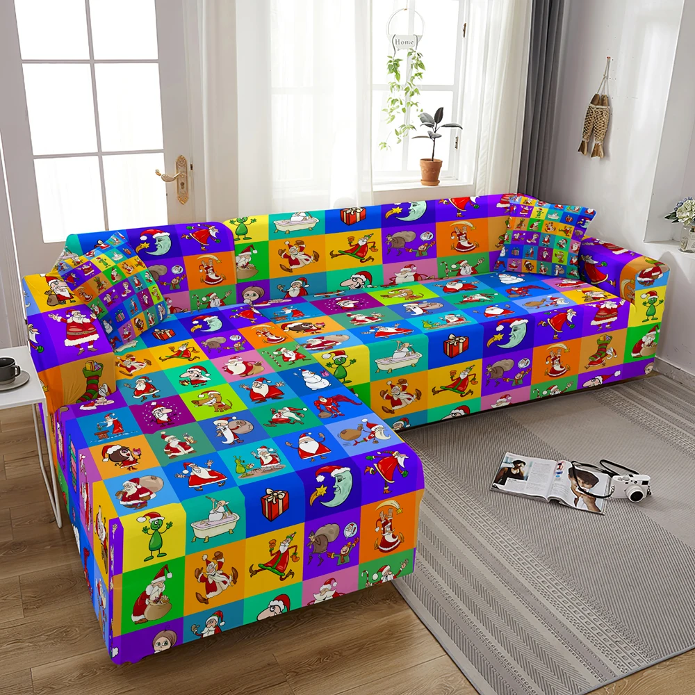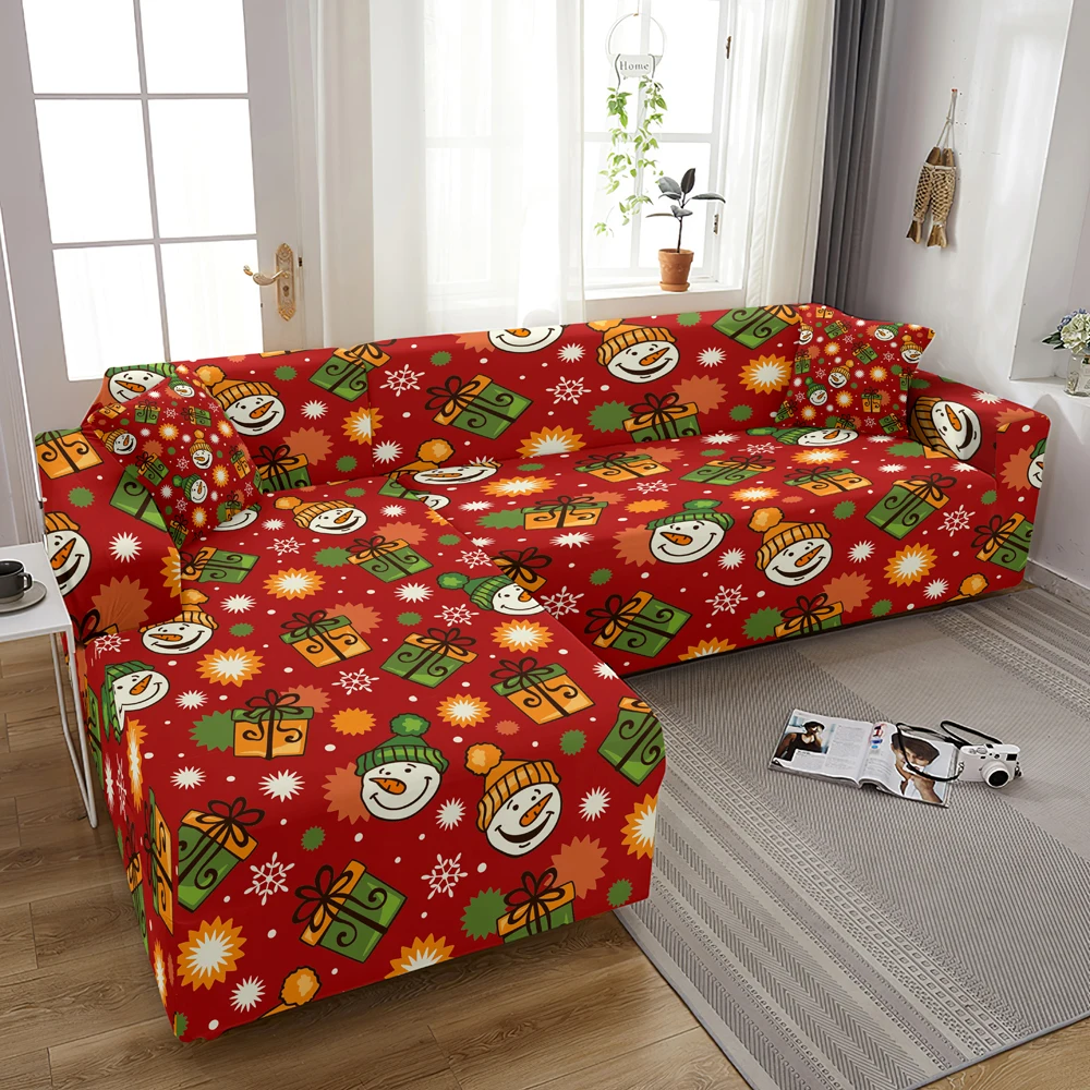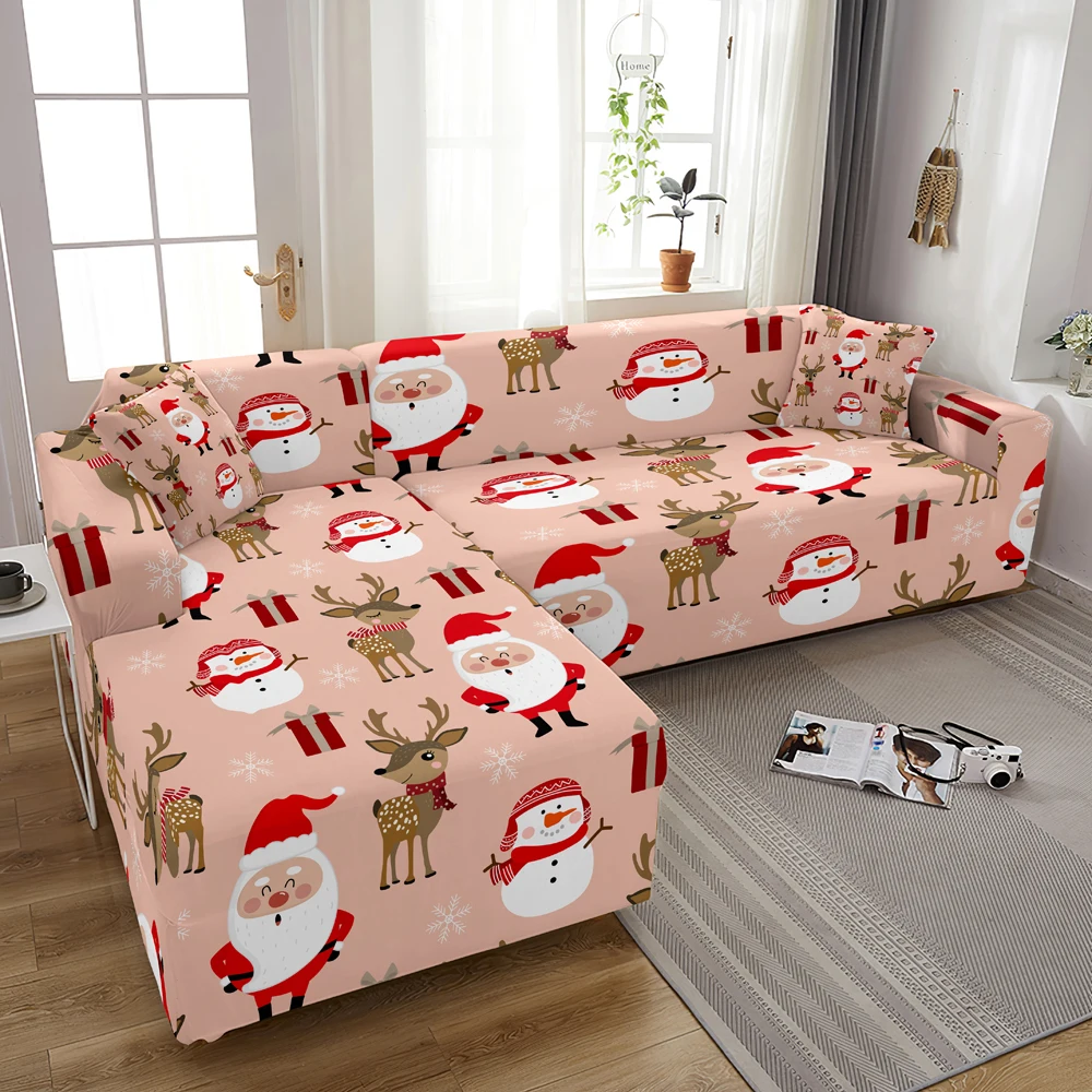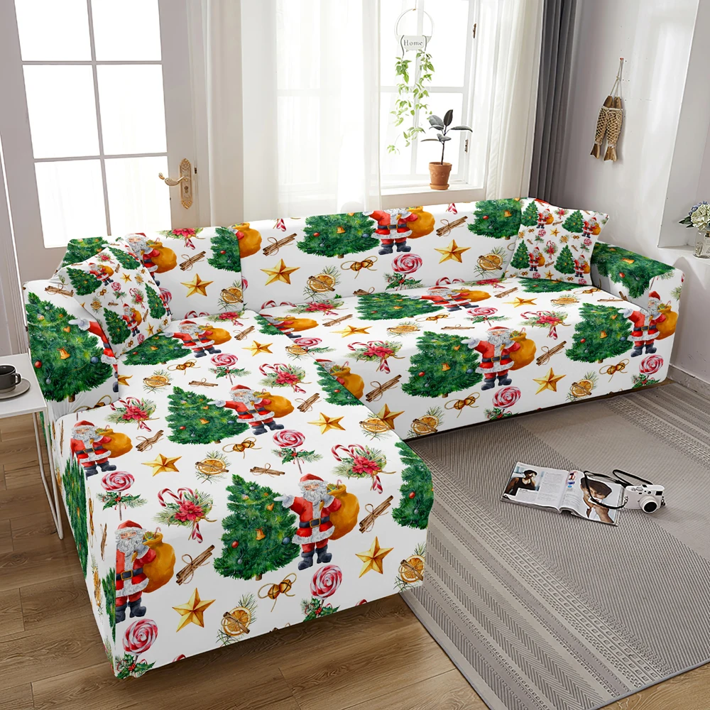 Рождественский эластичный чехол для дивана, растягивающийся чехол для сиденья с рисунком Санта-Клауса, угловой секционный диван, L-образный диван