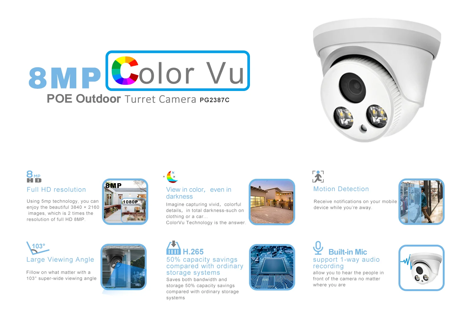 Совместимая с Hikvision купольная IP-камера 2 шт. ColorVu 8MP PoE В...