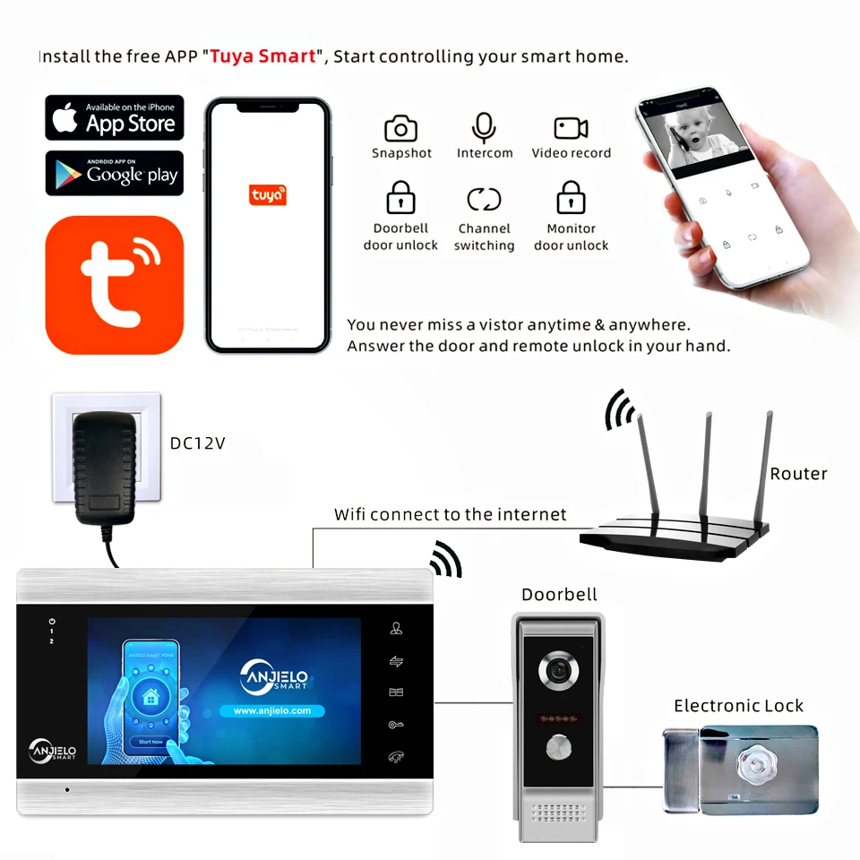 ♦Поддержка Tuya smart / Smart Life APP дистанционное управление дверью, просмотром и записью.