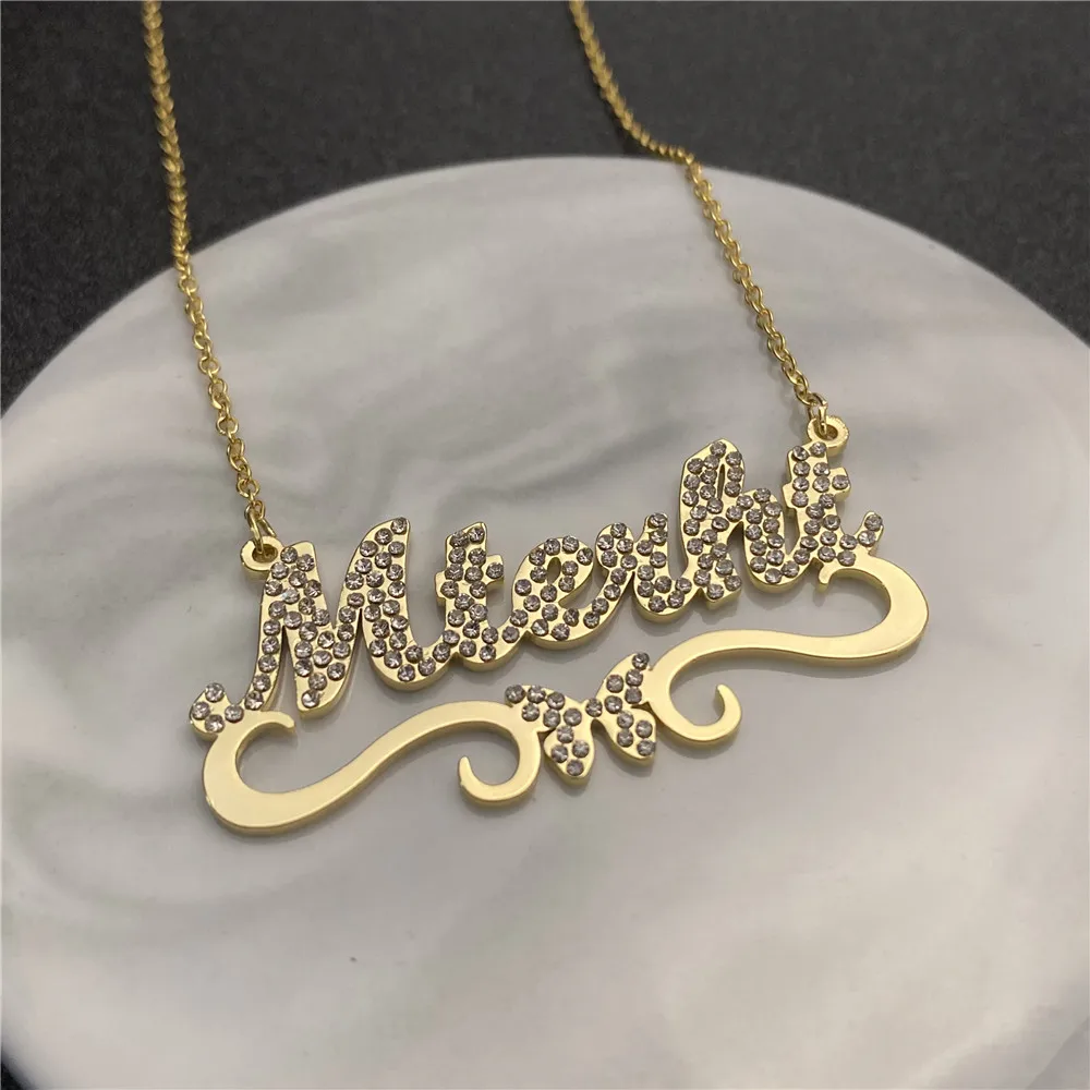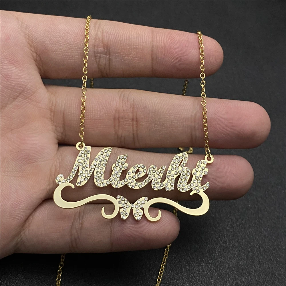 Ожерелье с именем на заказ из нержавеющей стали с персонализированным бриллиантовым кулоном-бабочкой ожерелье для женщин подарок на день рождения