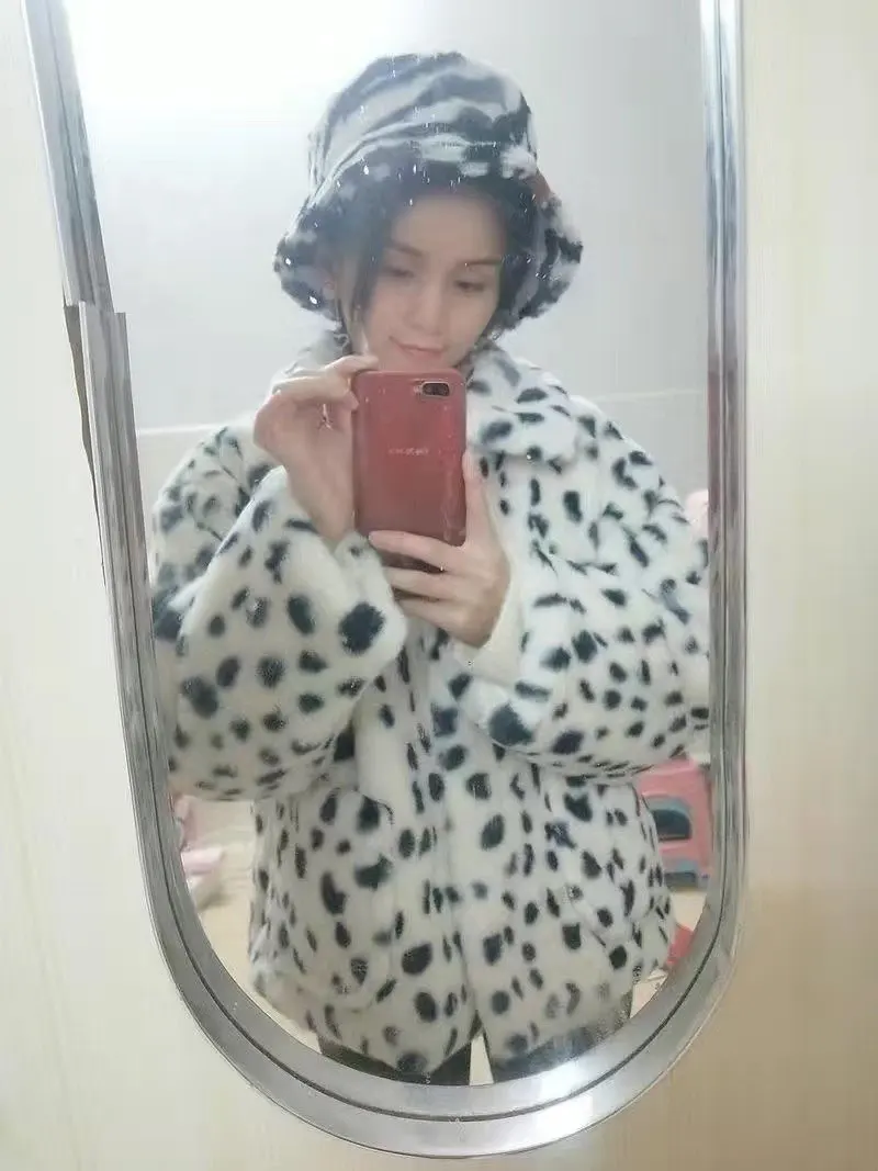 Зимние меховые пальто CZJMS с леопардовым принтом, женские свободные теплые куртки из искусственного меха, плюшевое пальто с отложным воротником, корейская мода, Новинка