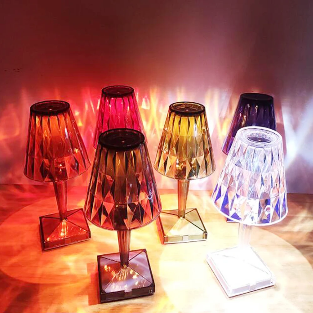 Алмазная Настольная лампа с сенсорным экраном, акриловый декоративный светильник для бара, спальни, прикроватного столика, кофейного цвета, светодиодный ночник