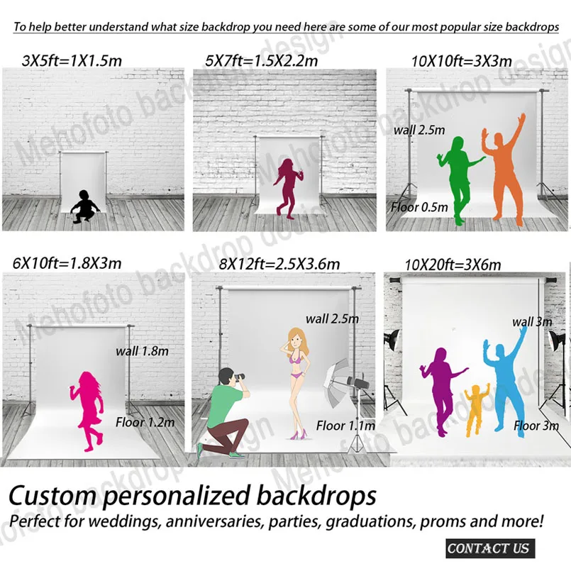 У нас также есть фон 10X10ft,8X10ft,7X10ft, 20x10ft,10X15ft для этого элемента, если вам нужноКонкретный размер, пожалуйста, свяжитесь с нами.