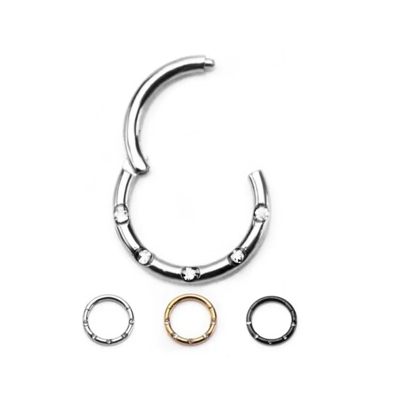 1 шт. титановое кольцо с откидным сегментом для носа и уха, хрящевая Козелка, спираль, пирсинг для губ, кольцо в носу, гвоздики, радуга, золото, черный, панк, ювелирные изделия